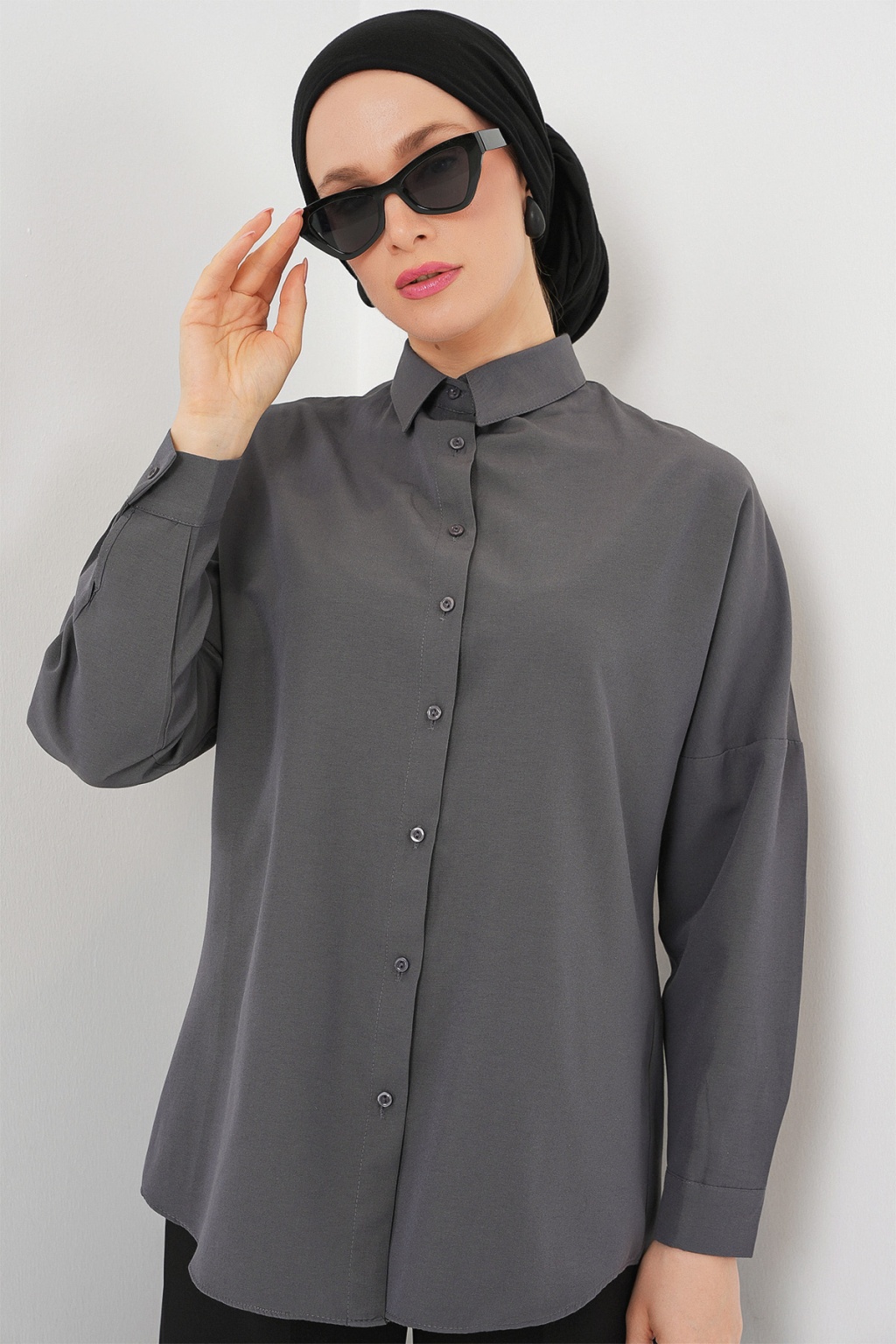 103901 Oversize Basic Tesettür Gömlek - Gri