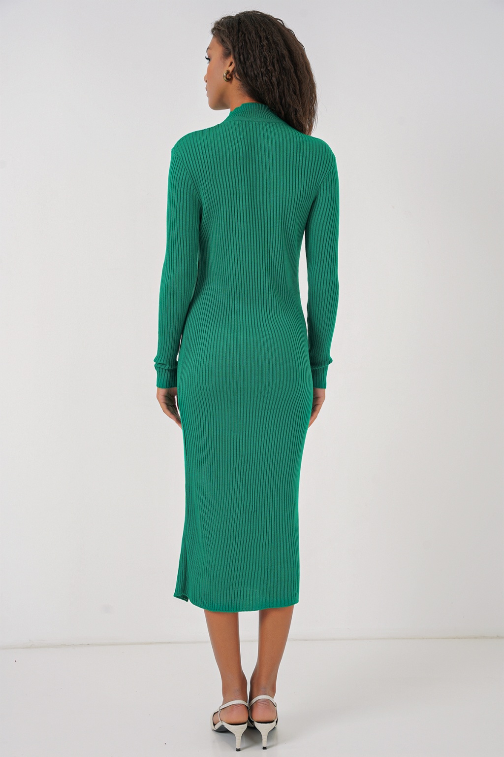 15828 Yırtmaçlı Triko Elbise - Yeşil