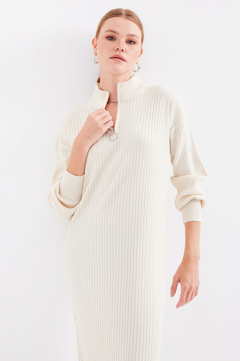 15839 Boydan Triko Elbise - Krem
