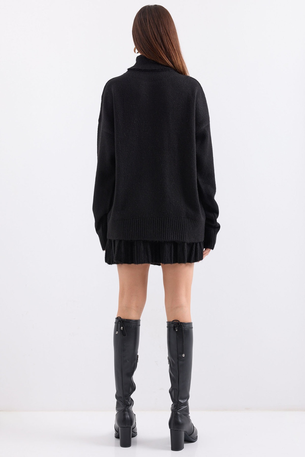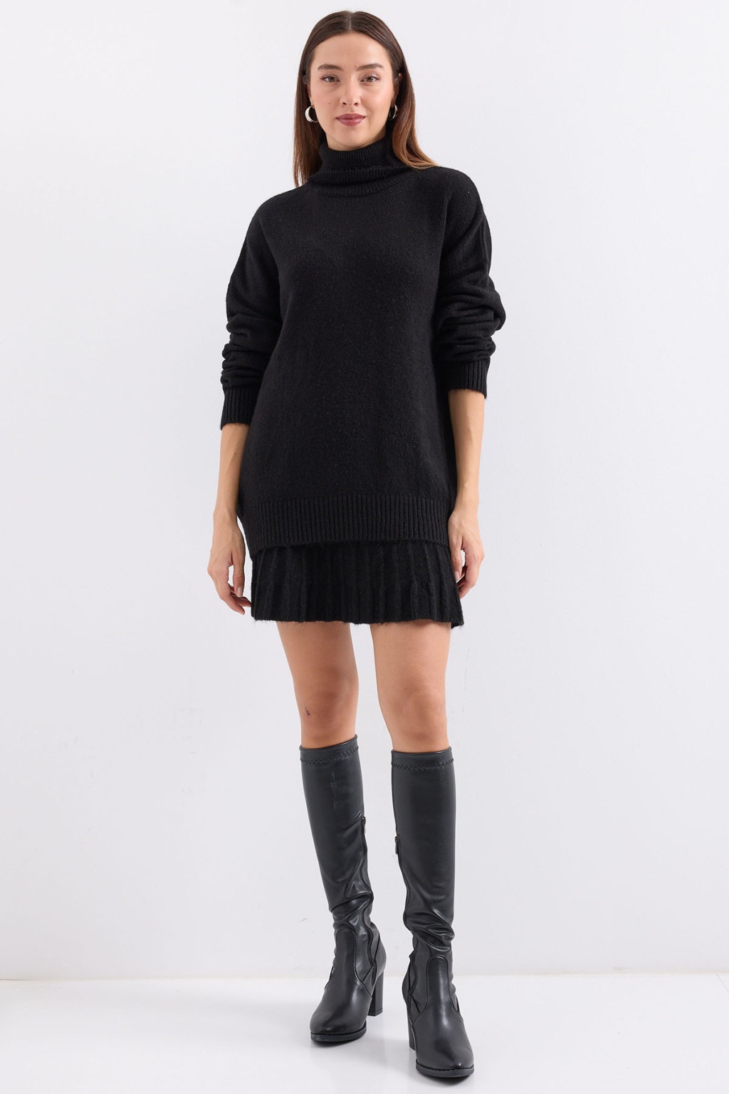 15891 Kazak Etek Triko İkili Takım - Siyah