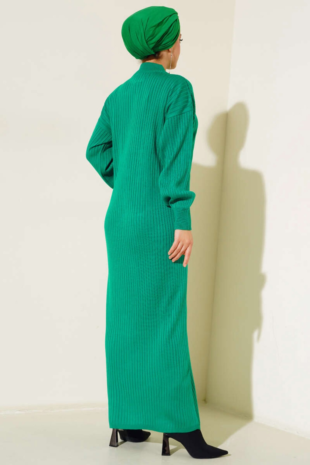 15900 Boydan Tesettür Triko Elbise - Yeşil