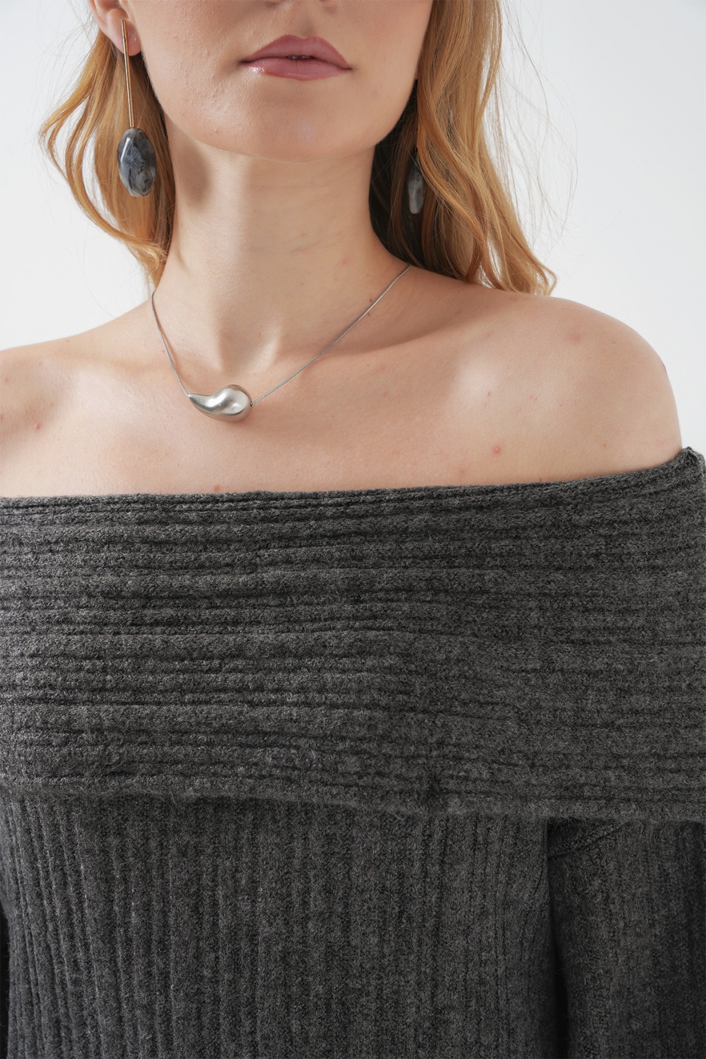 15920 Madonna Yaka Oversize Triko Elbise - Antrasit