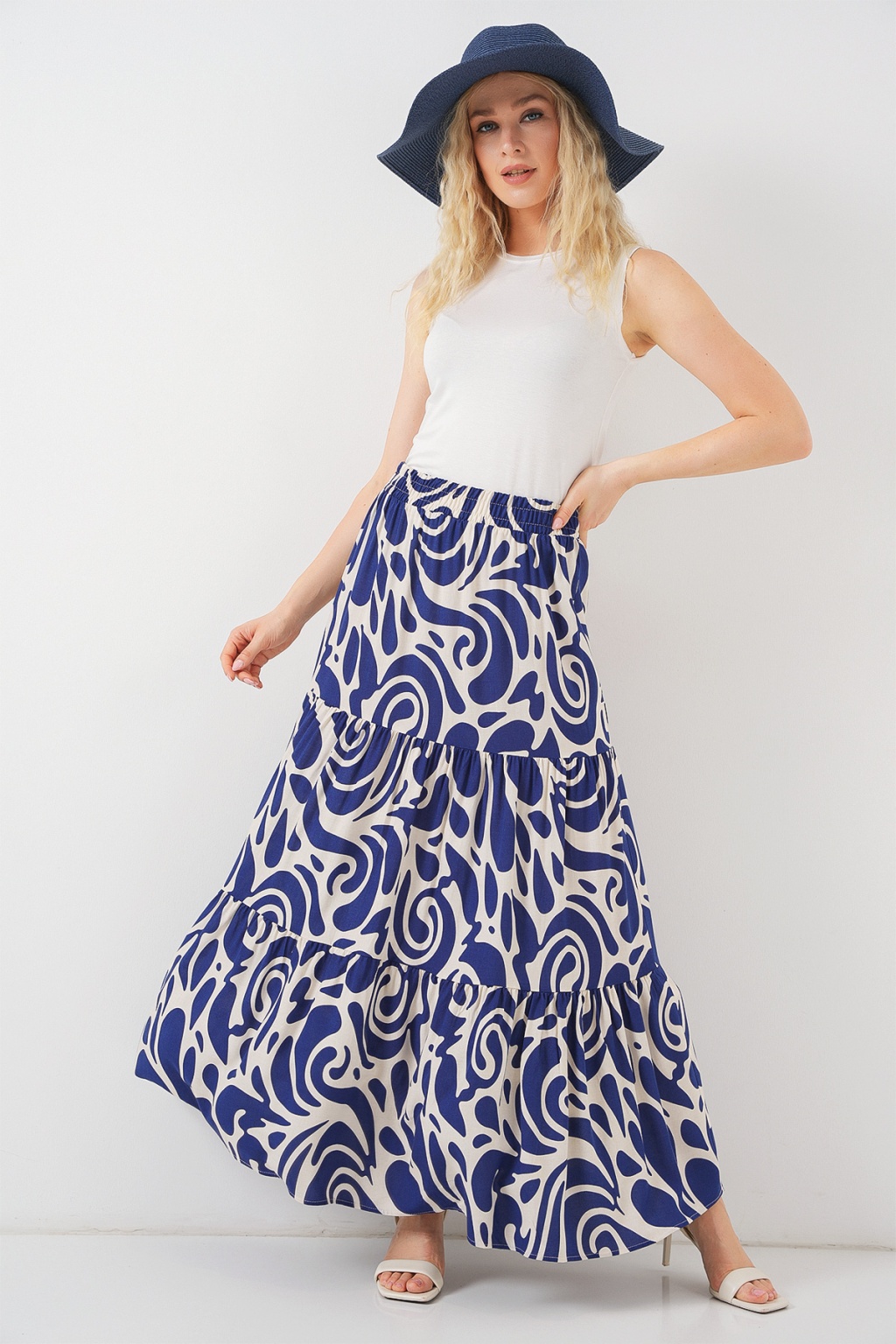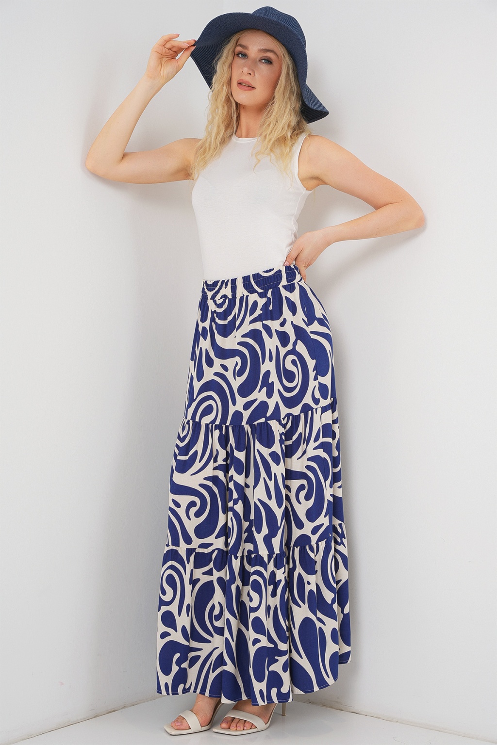 1898 Desenli Uzun Etek - F.Lacivert