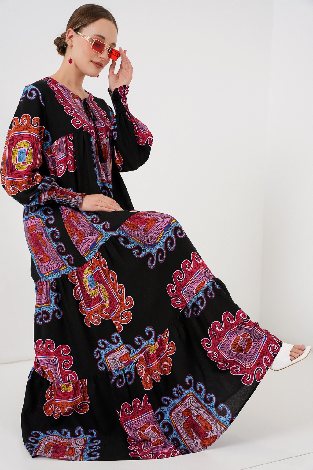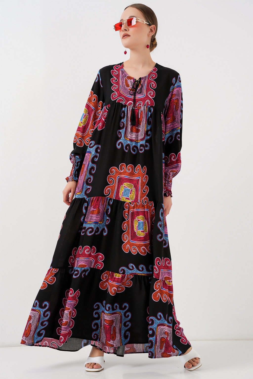 1947 Desenli Uzun Elbise - M. Kırmızı