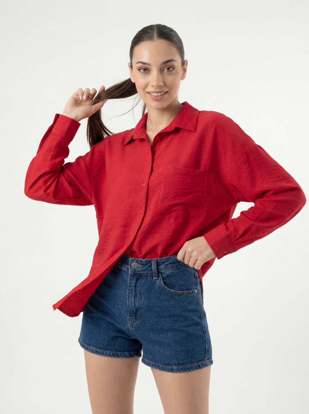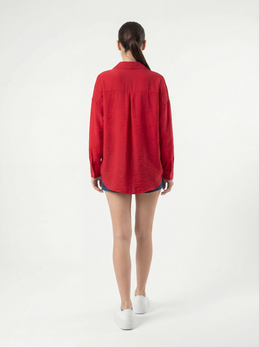 20153 Tek Cepli Oversize Keten Gömlek - Nar