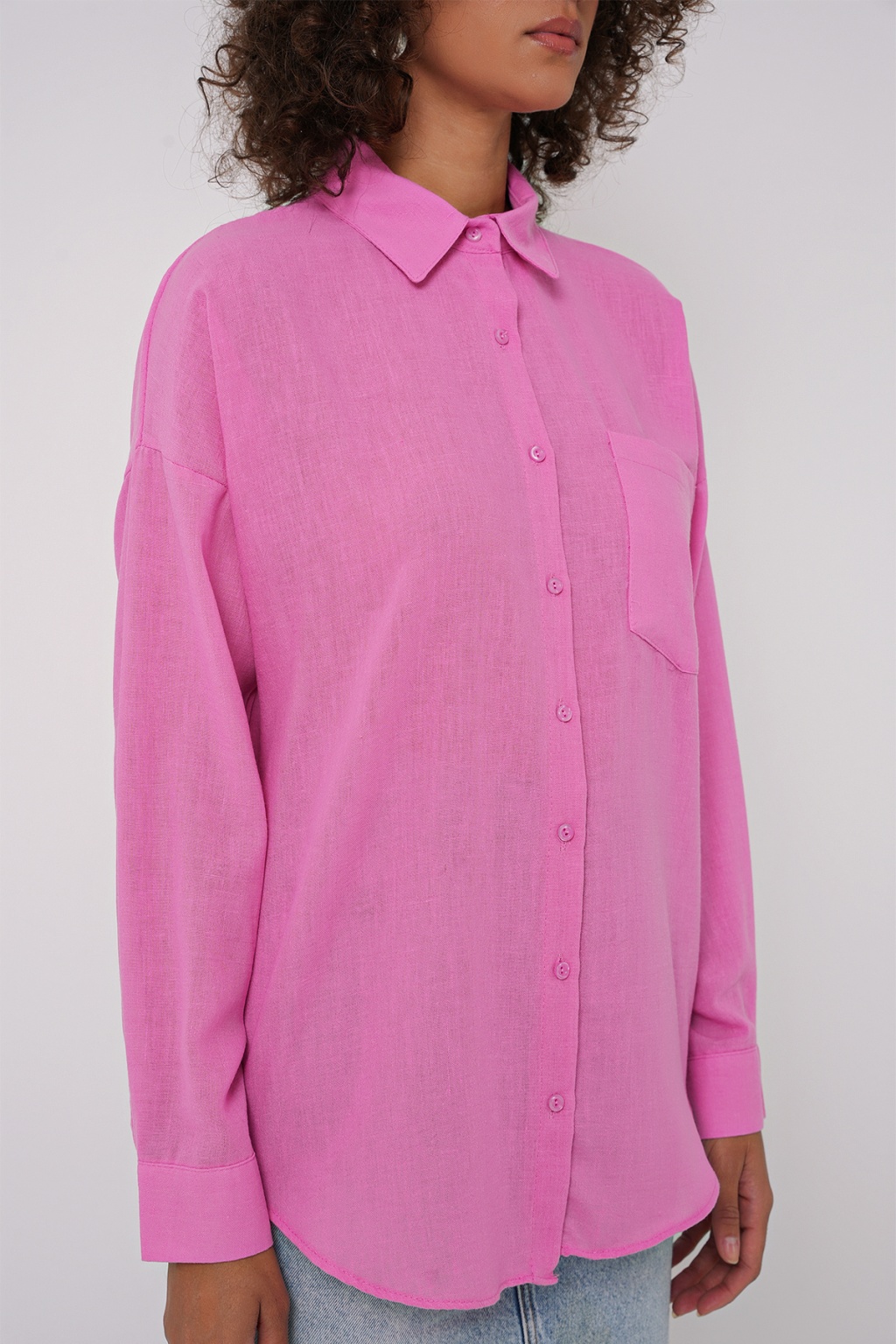 20153 Tek Cepli Oversize Keten Gömlek - Pembe