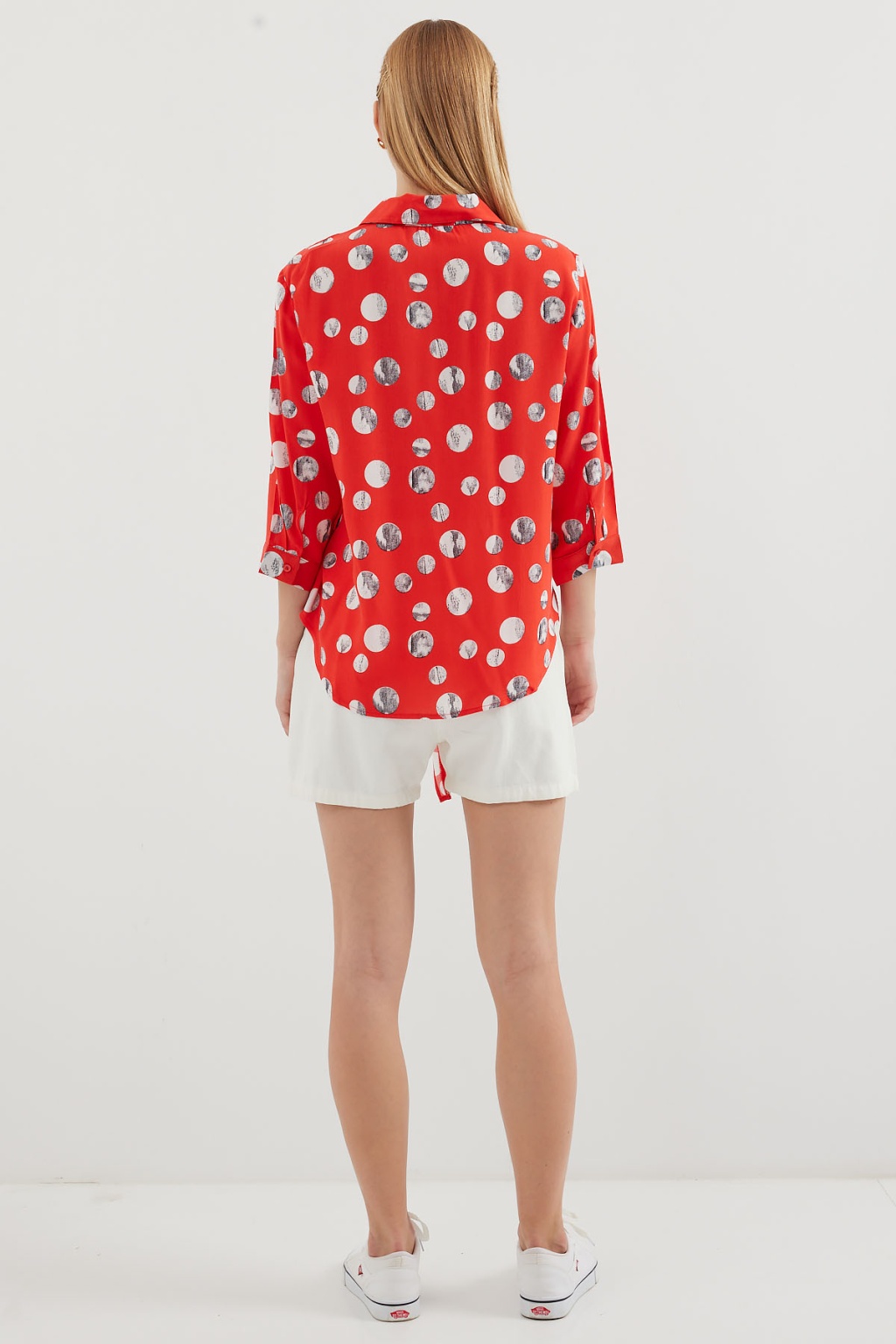 20243 Önü Bağlamalı Desenli Gömlek - Kırmızı