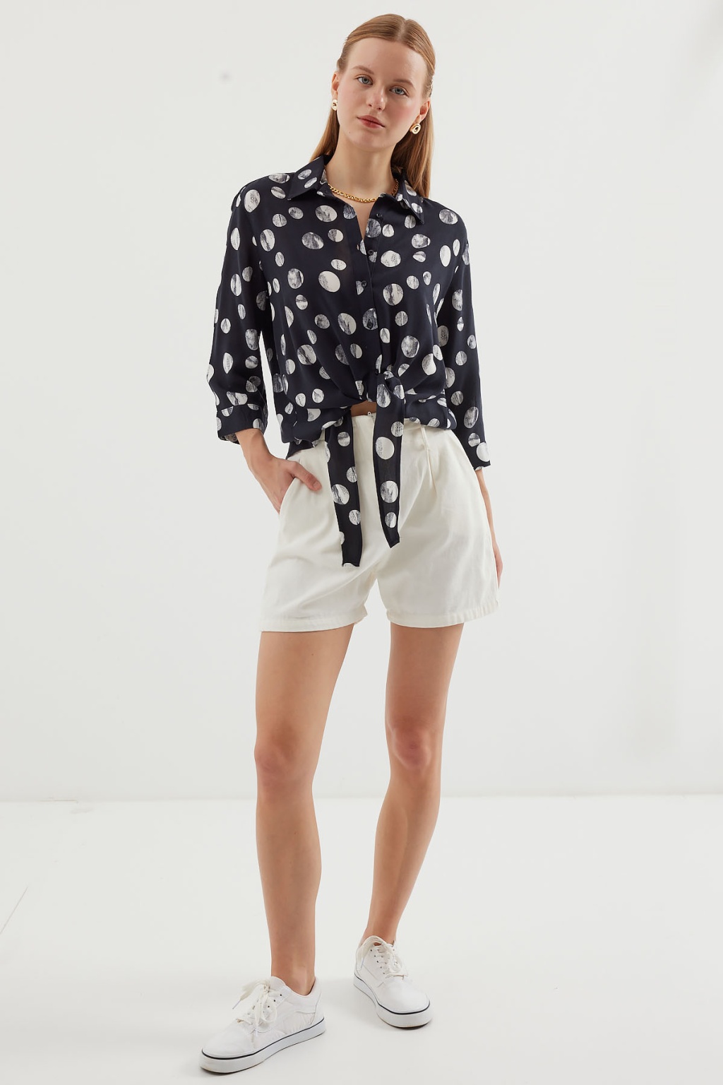 20243 Önü Bağlamalı Desenli Gömlek - Siyah