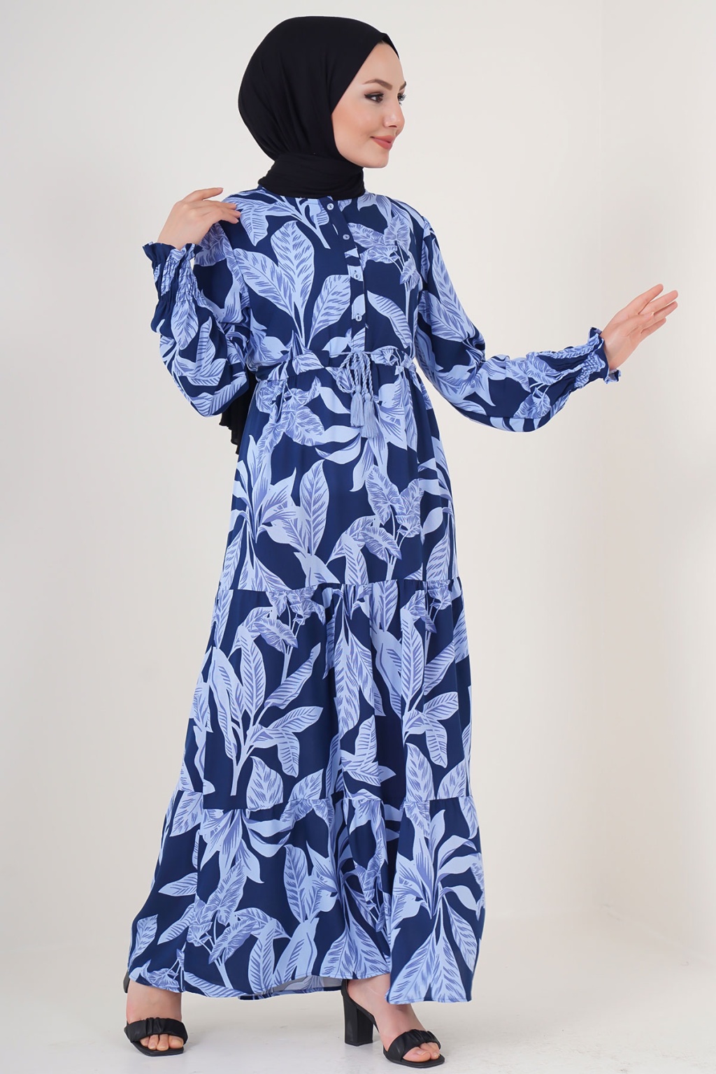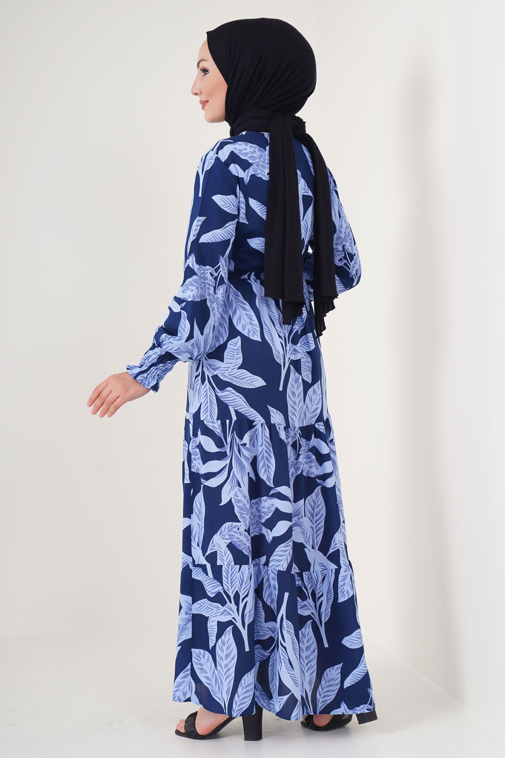 Yaprak Desenli Elbise, Kol Büzgülü Elbise