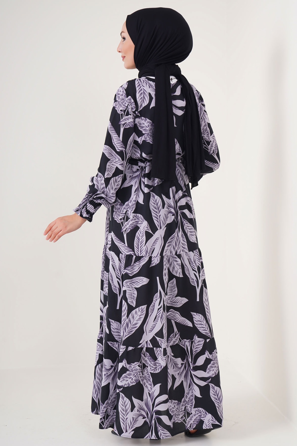 2145 Desenli Tesettür Elbise - D. Siyah