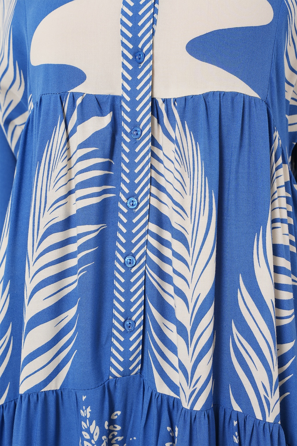 2423 Otantik Desenli Tesettür Elbise - H. İndigo