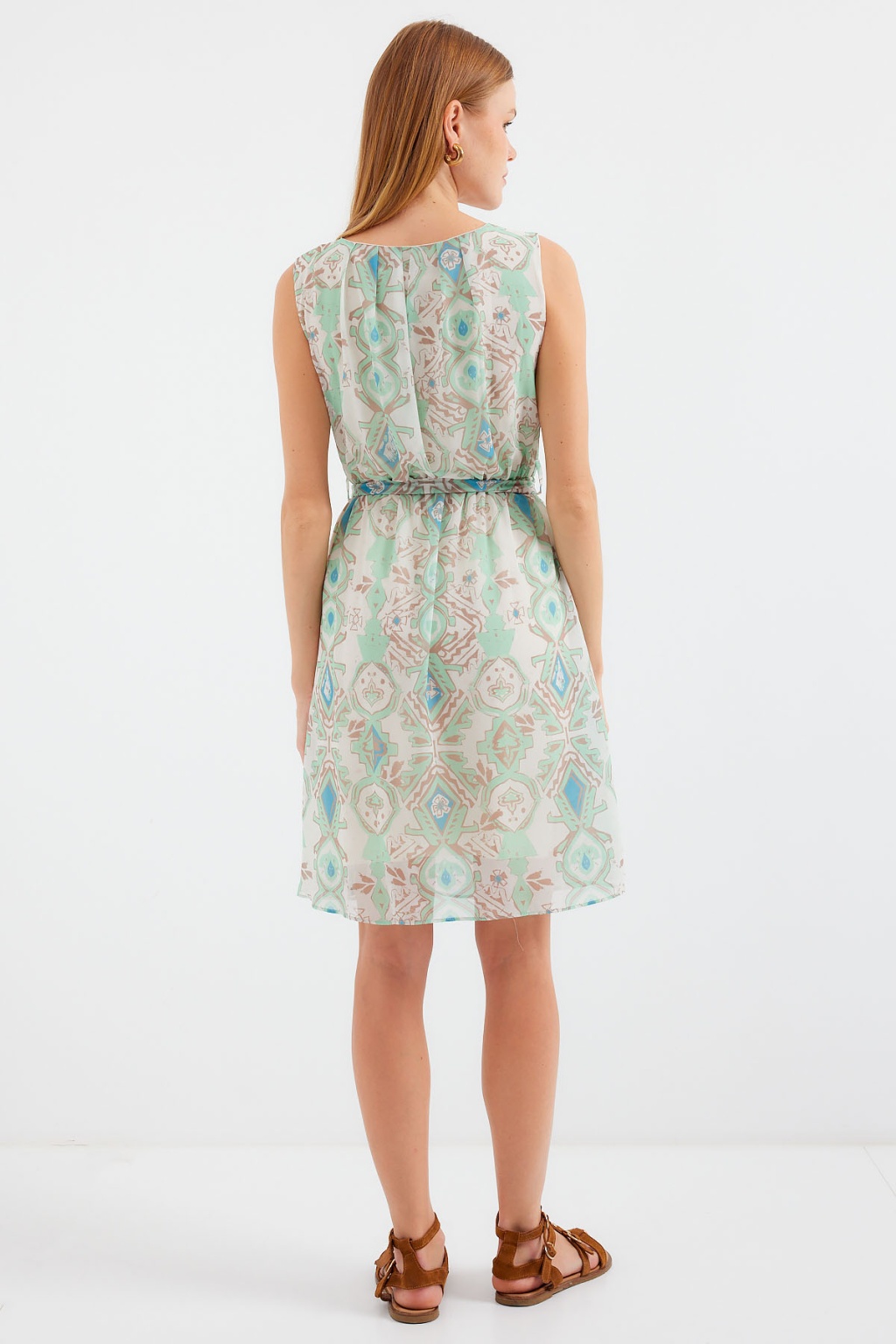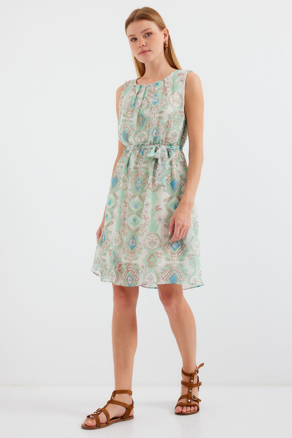 2501 Desenli Sıfır Kol Şifon Elbise - Mint