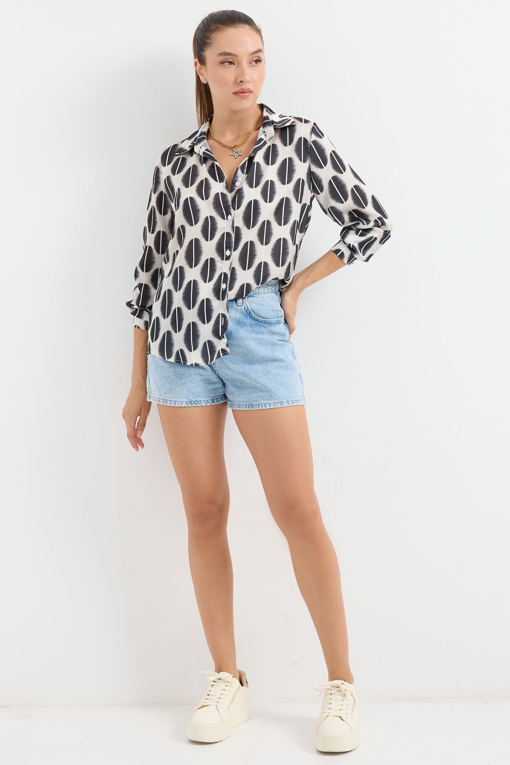 Hafif Dökümlü Saten Gömlek