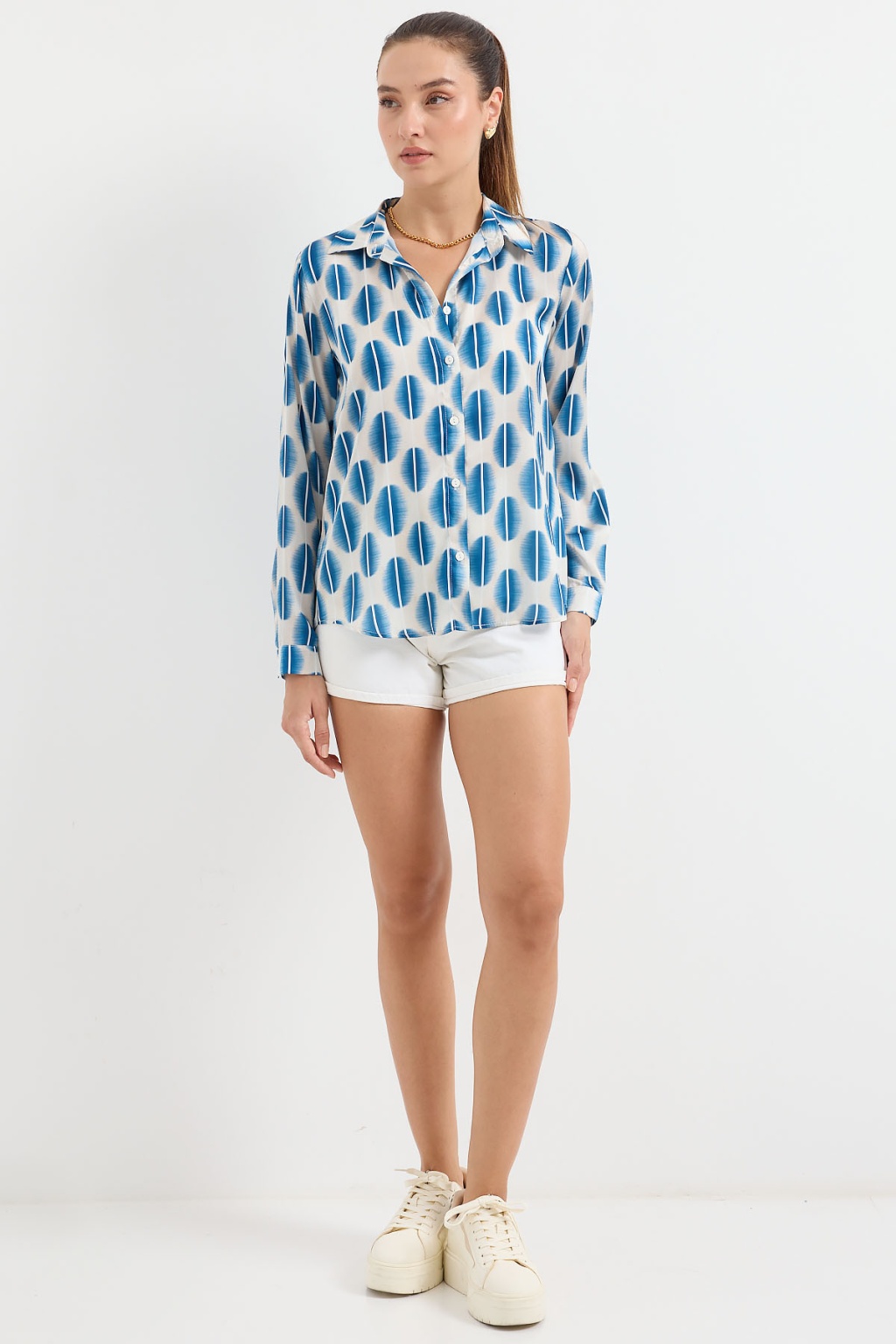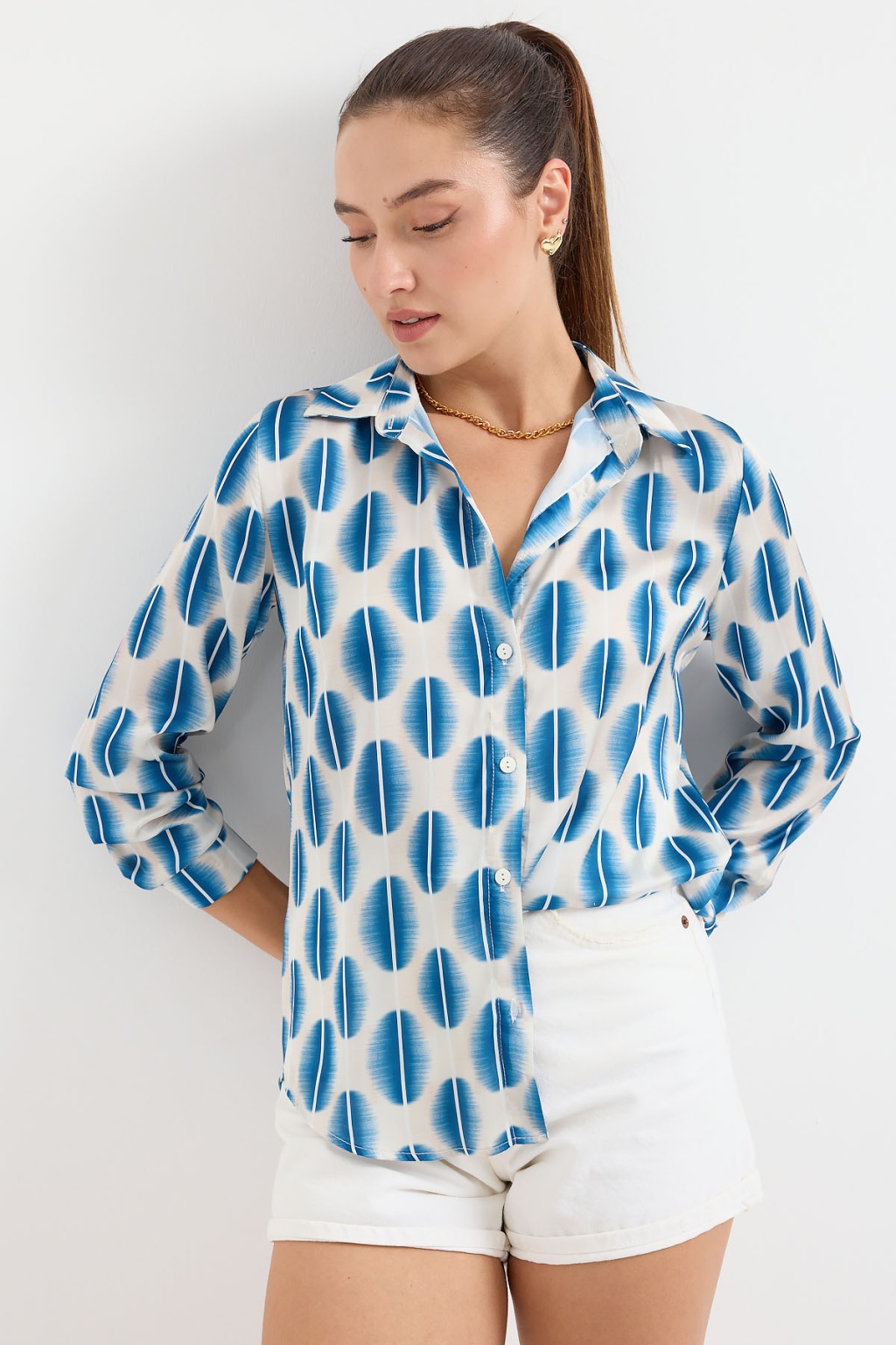 3964 Hafif Dökümlü Saten Gömlek - B.Mavi