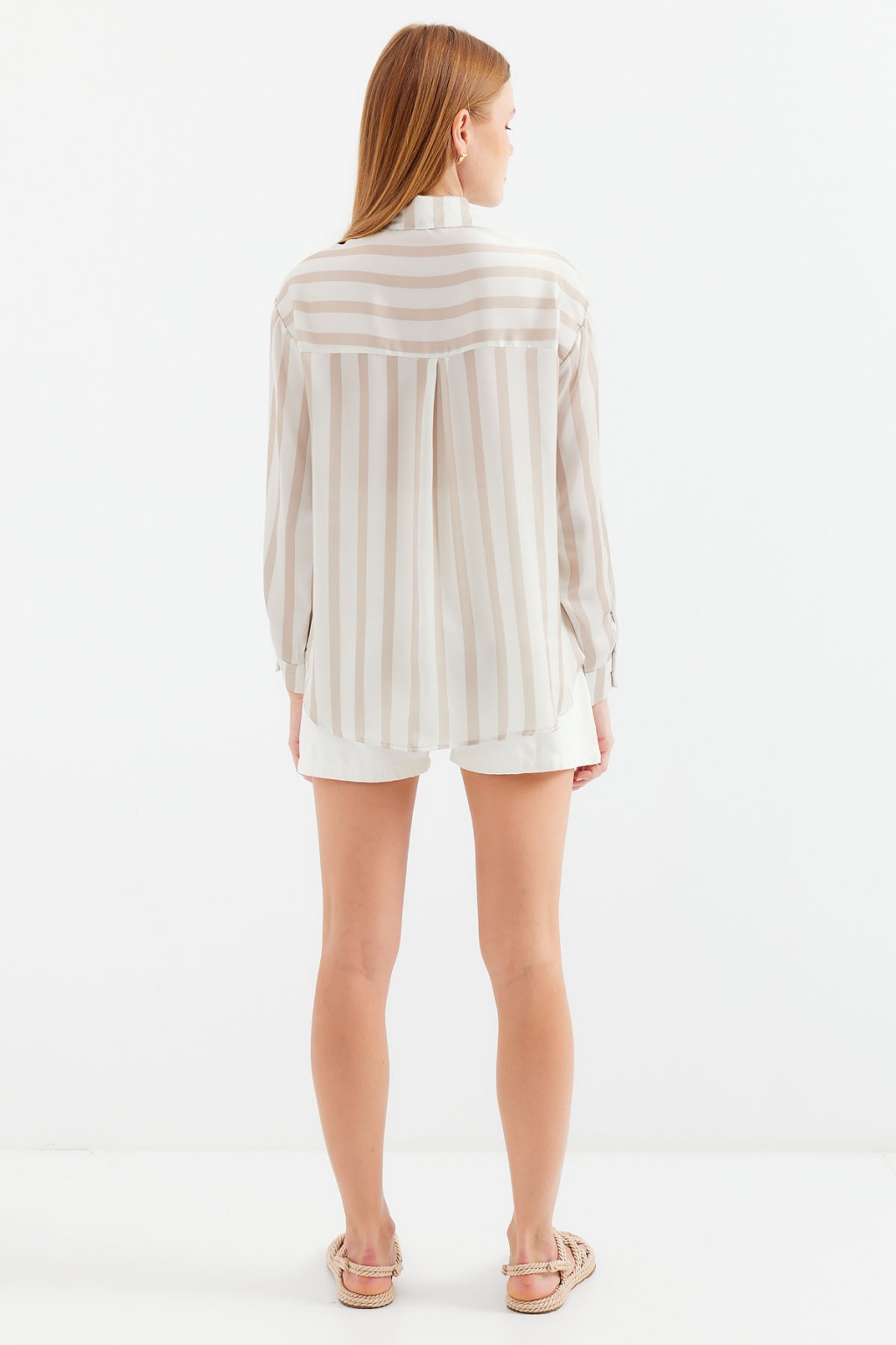 3964 Hafif Dökümlü Saten Gömlek - C. Bej