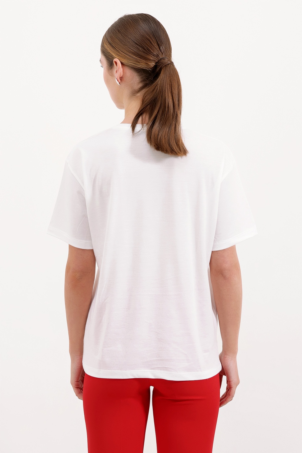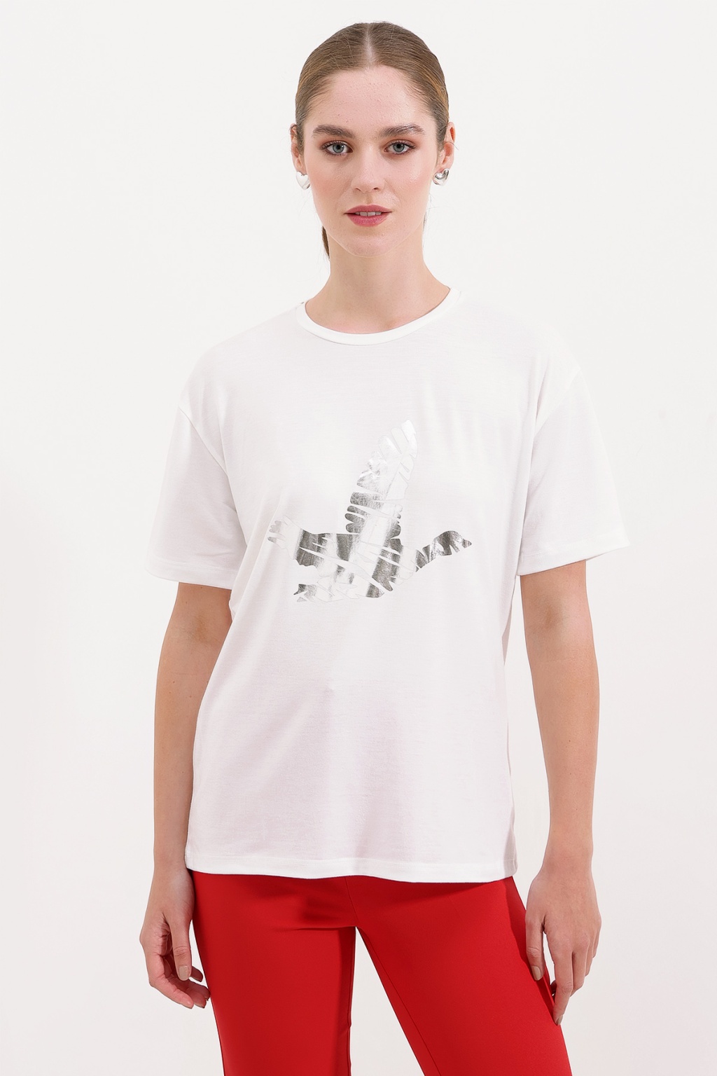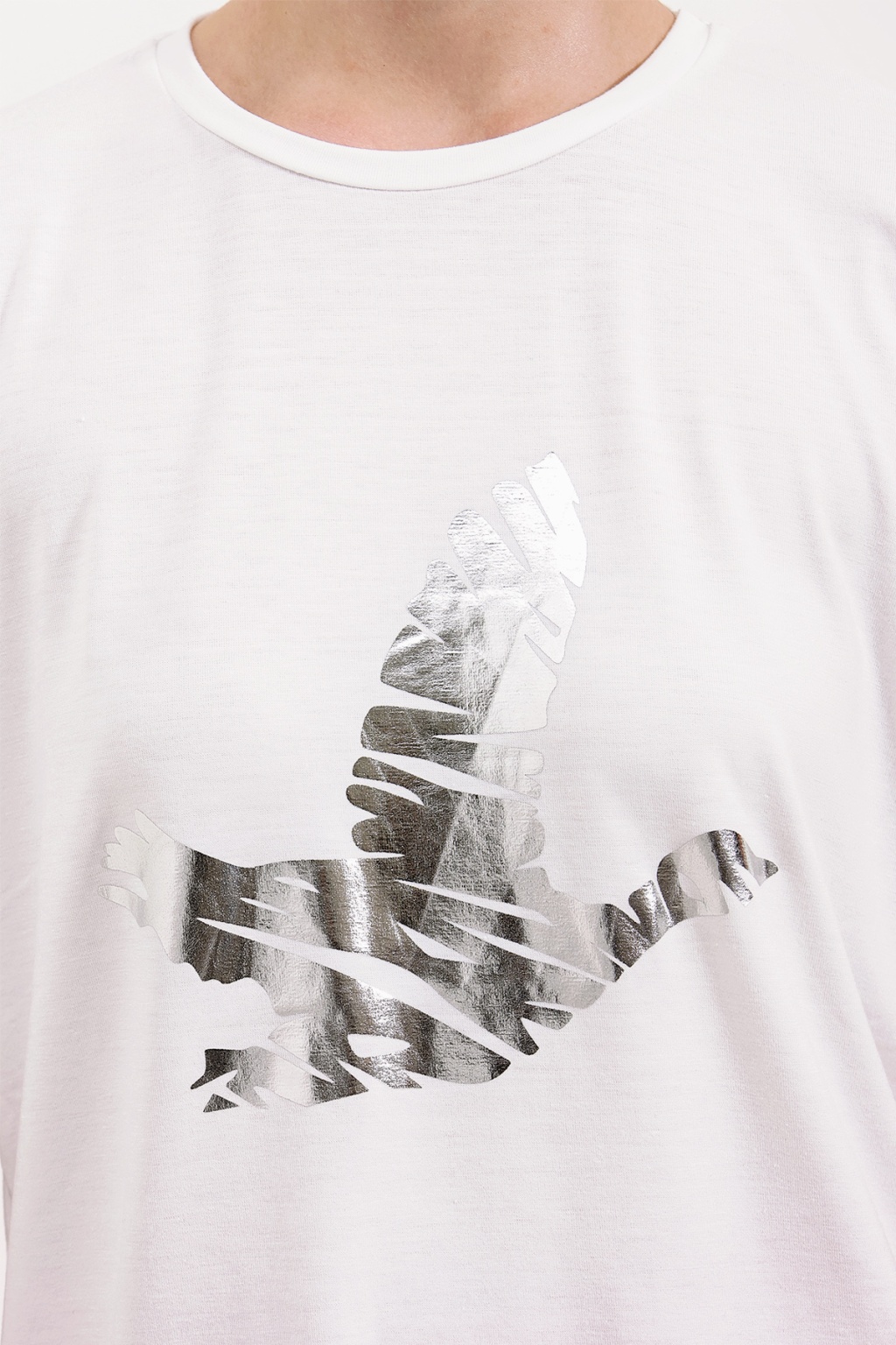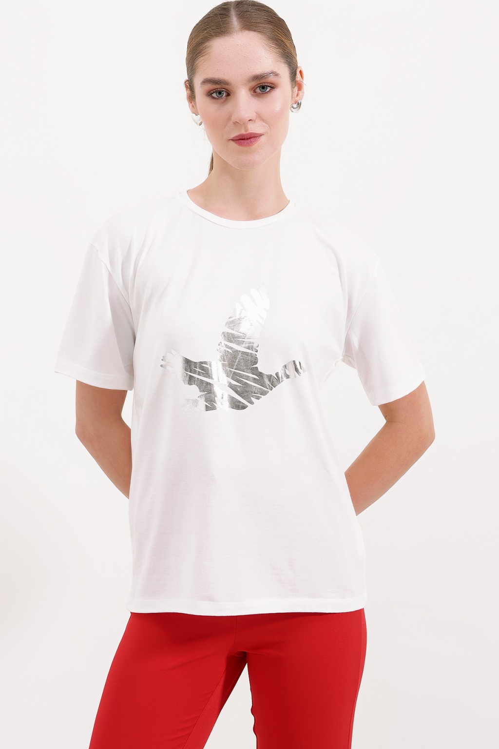 4317 Bisiklet Yaka Baskılı Tişört - Gümüş