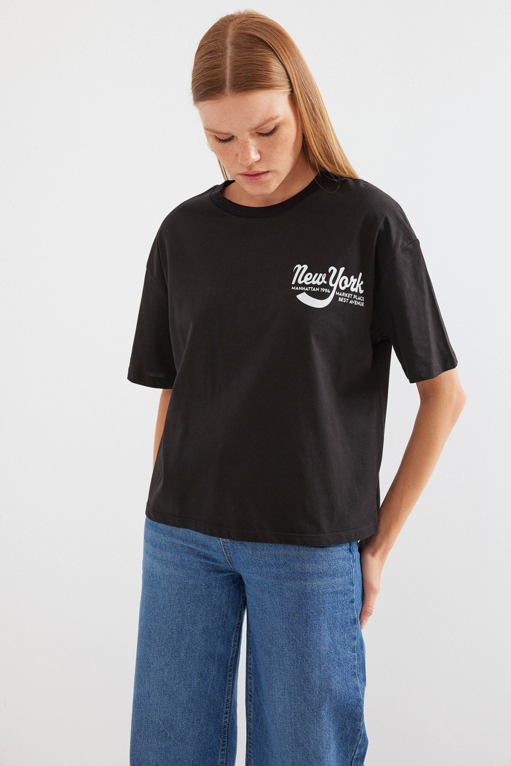 4318 Baskılı Basic Tişört - Siyah