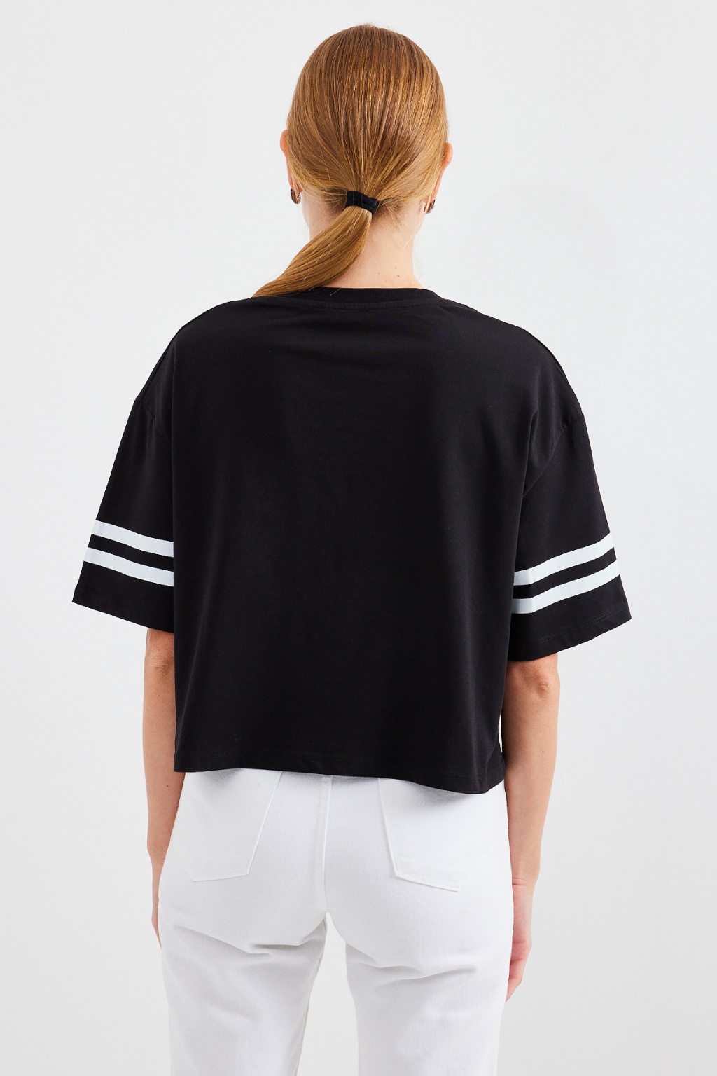 4322 Baskılı Oversize Basic Tişört - Siyah