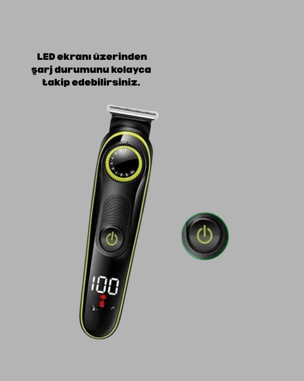 Şarjlı Tıraş Makinesi –Dijital Ekranlı, Hızlı Şarjlı, Profesyonel Kesim Seti