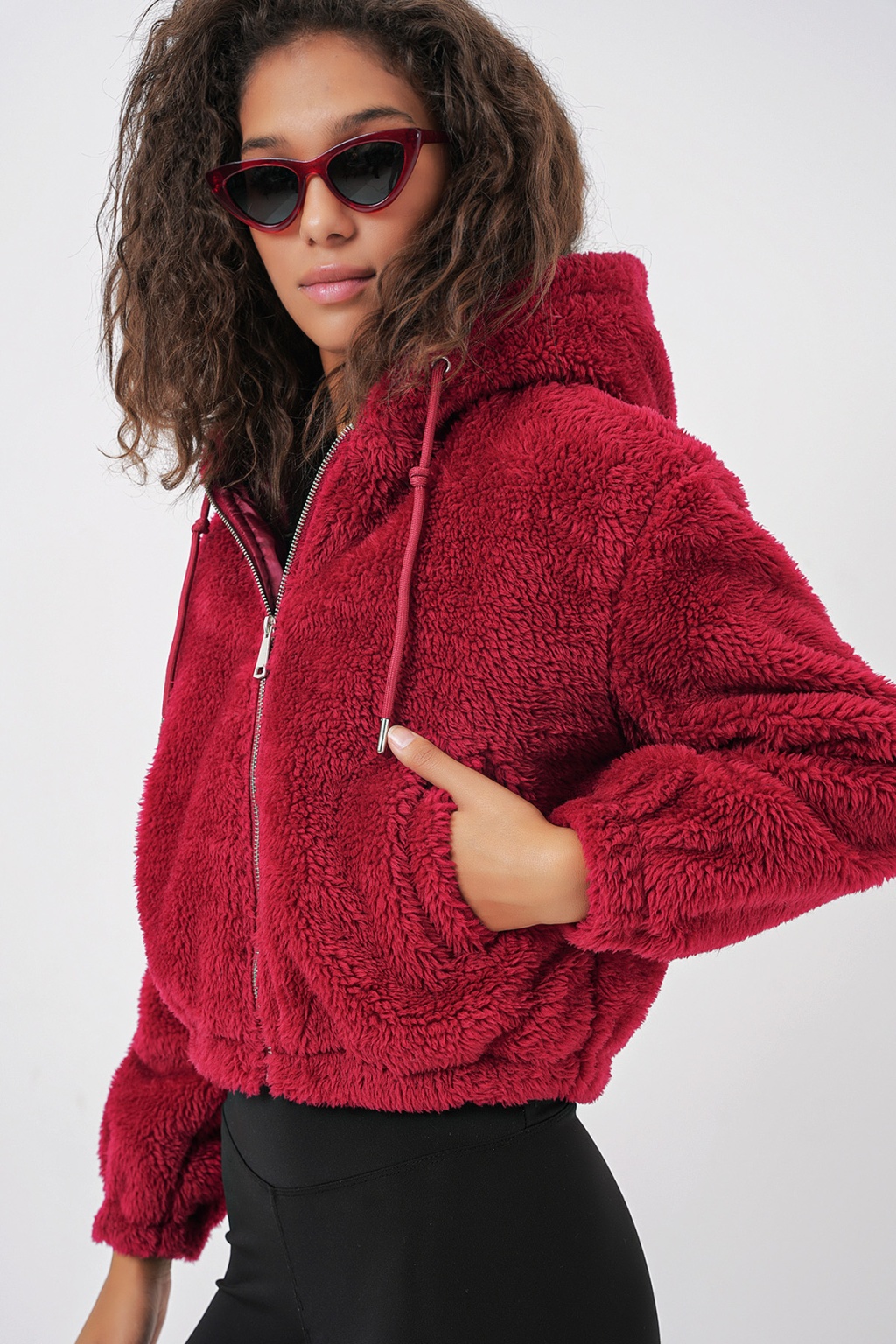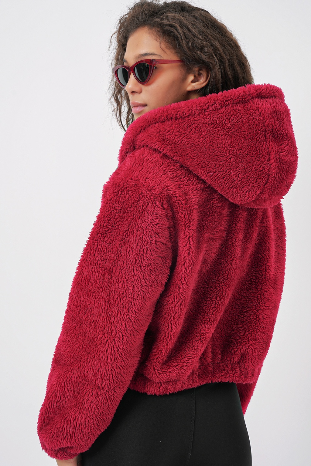 Kapüsonlu Pelus Crop Ceket