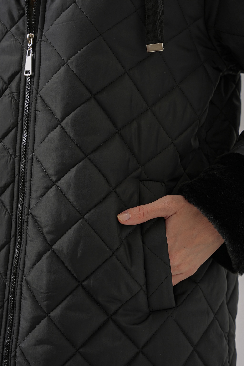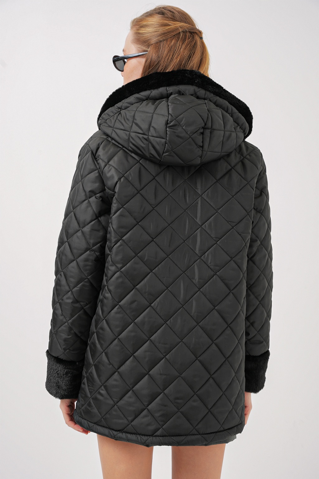 Kürk Detayli Kapüsonlu Kapitone Mont