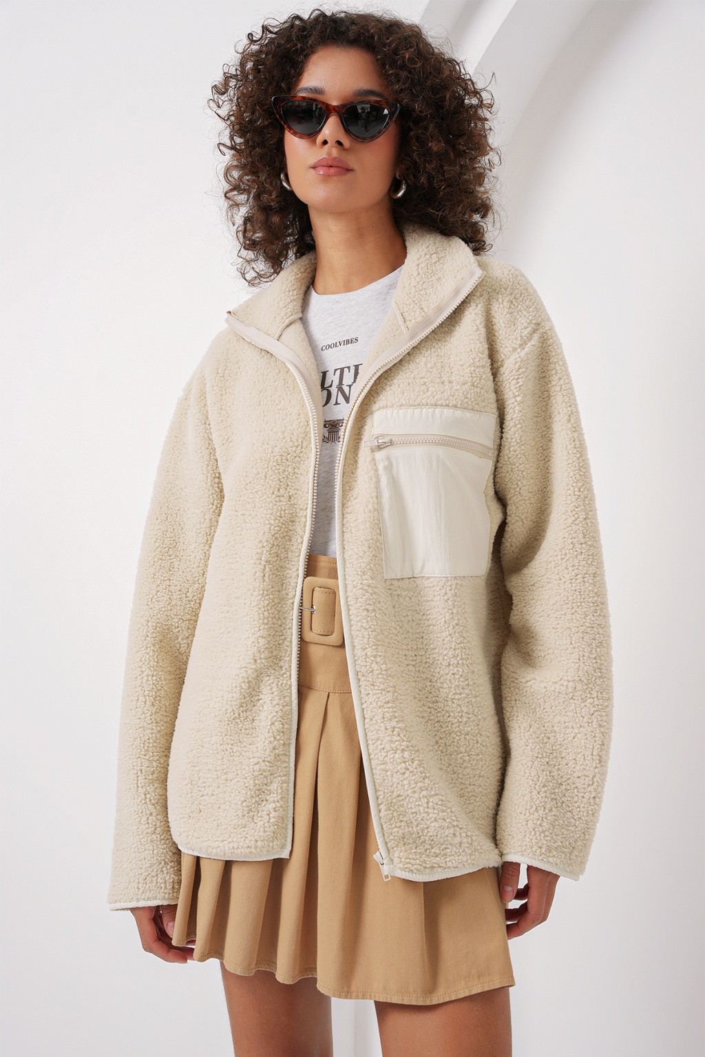 Fermuarli Oversize Pelus Ceket