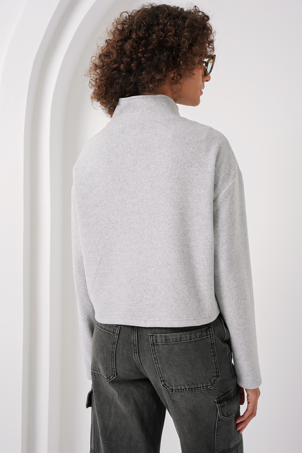 55449 Fermuarlı Yaka Örme Sweatshirt - Gri