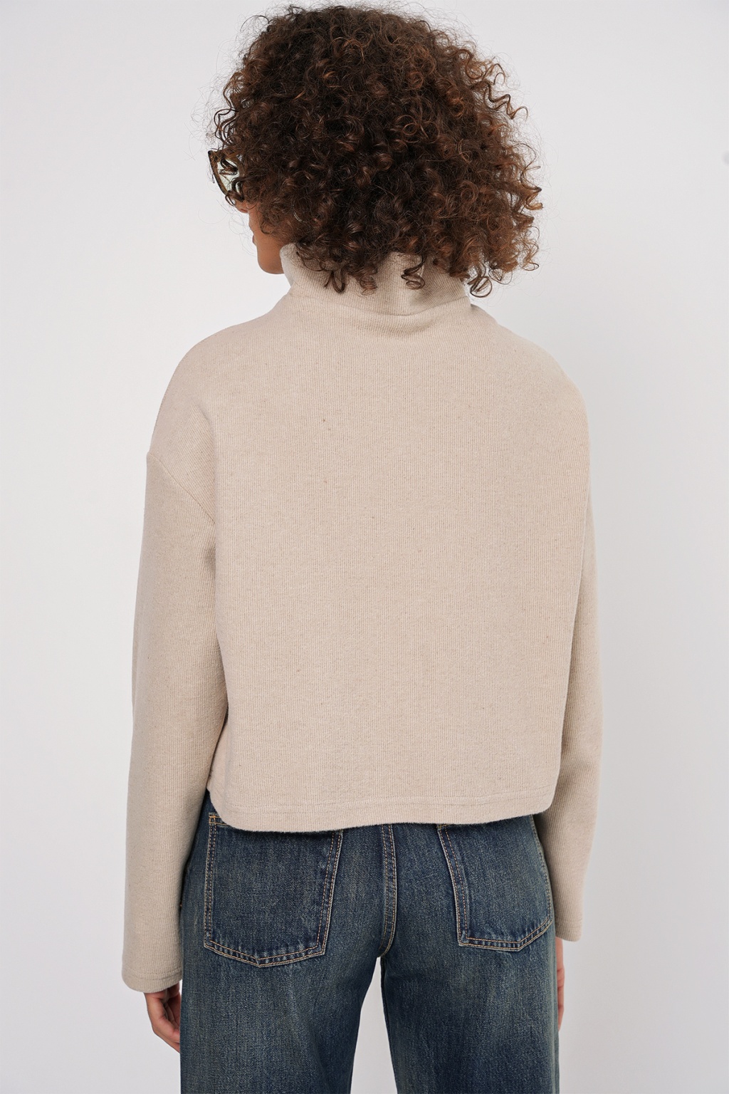 55449 Fermuarlı Yaka Örme Sweatshirt - Krem