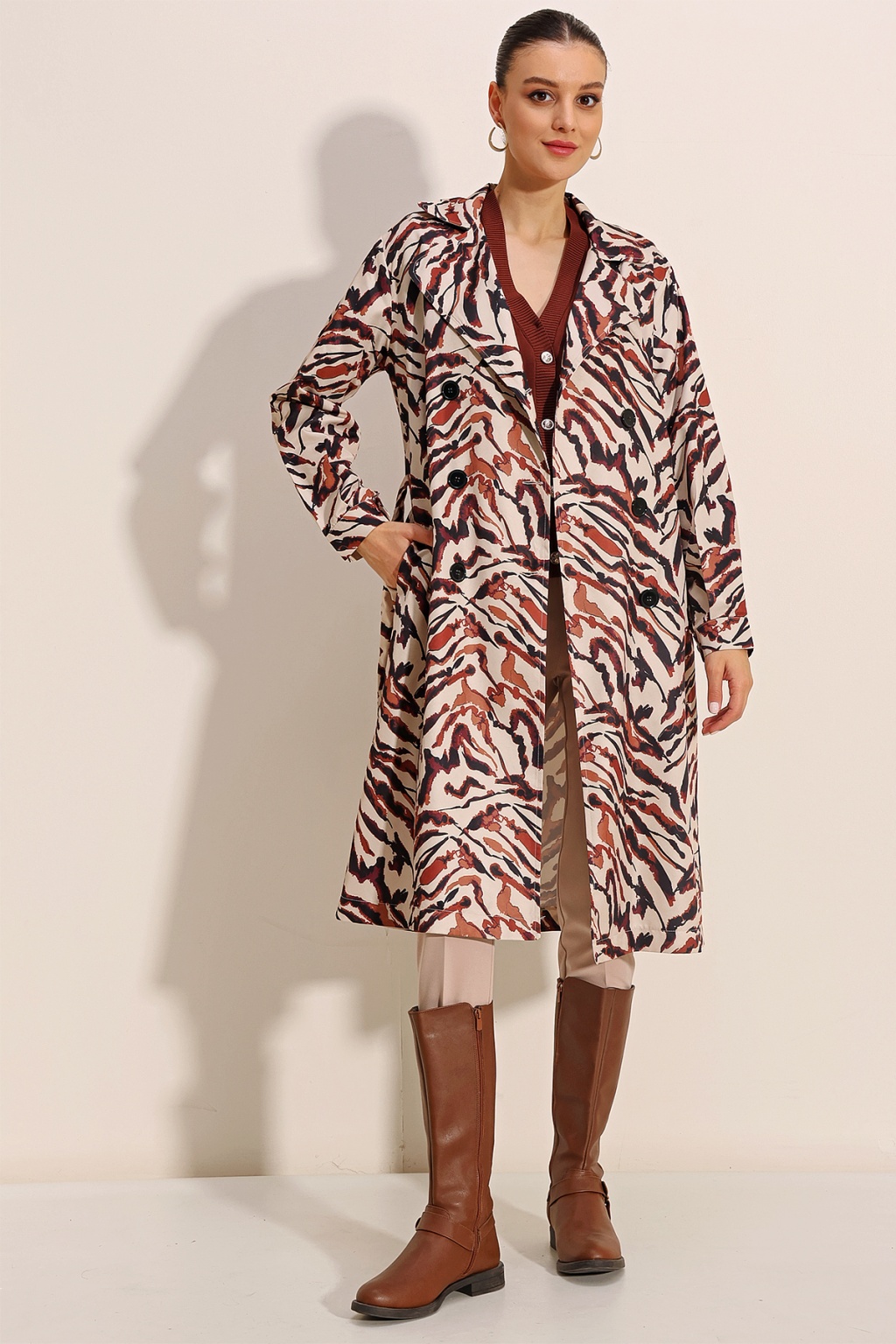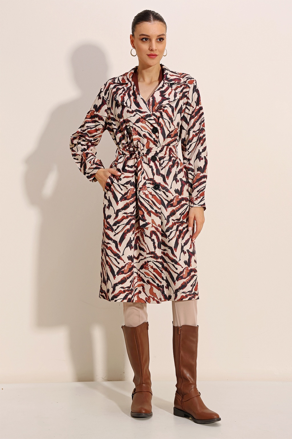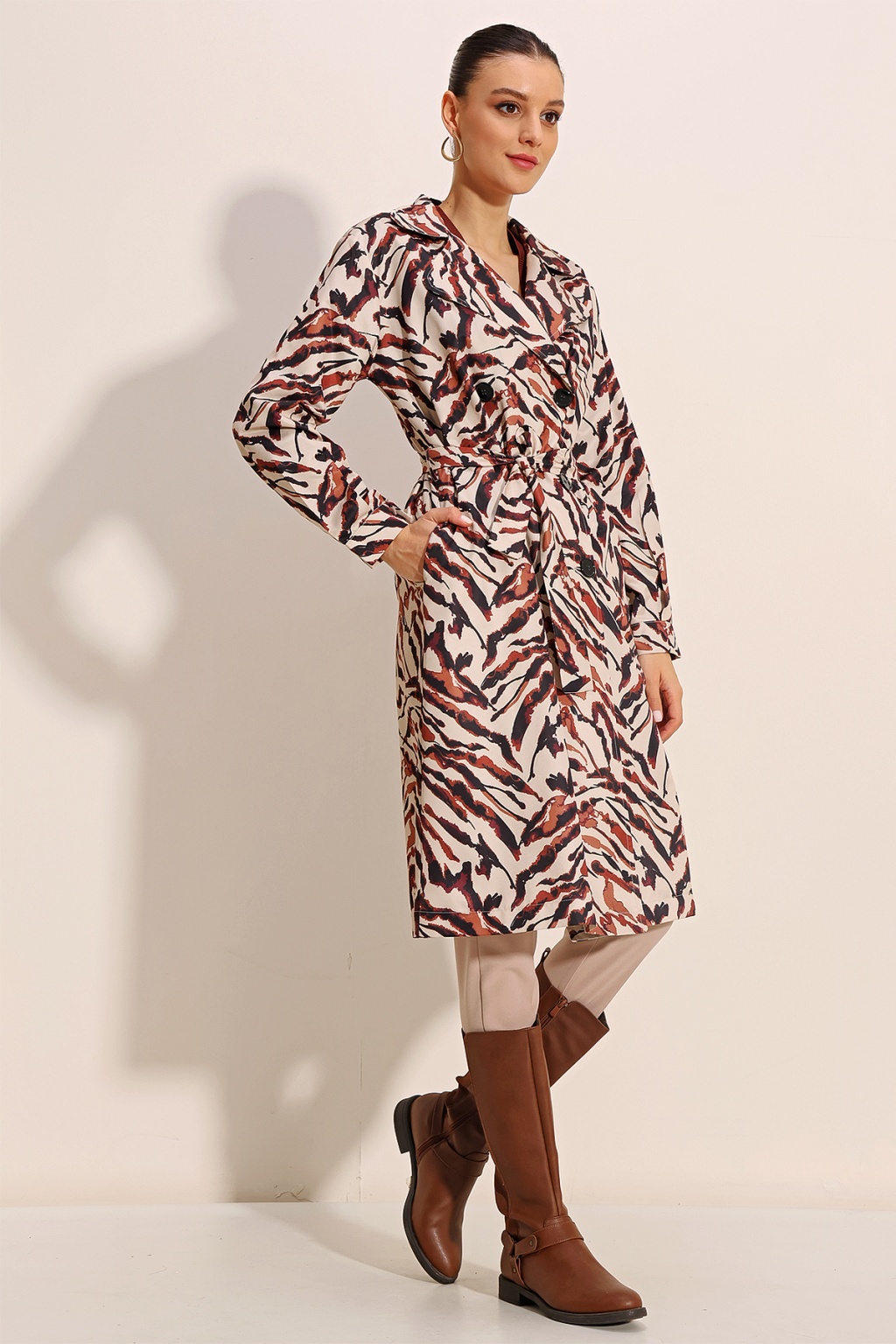 Kruvaze Yaka Trençkot, Kemerli Mevsimlik Trençkot