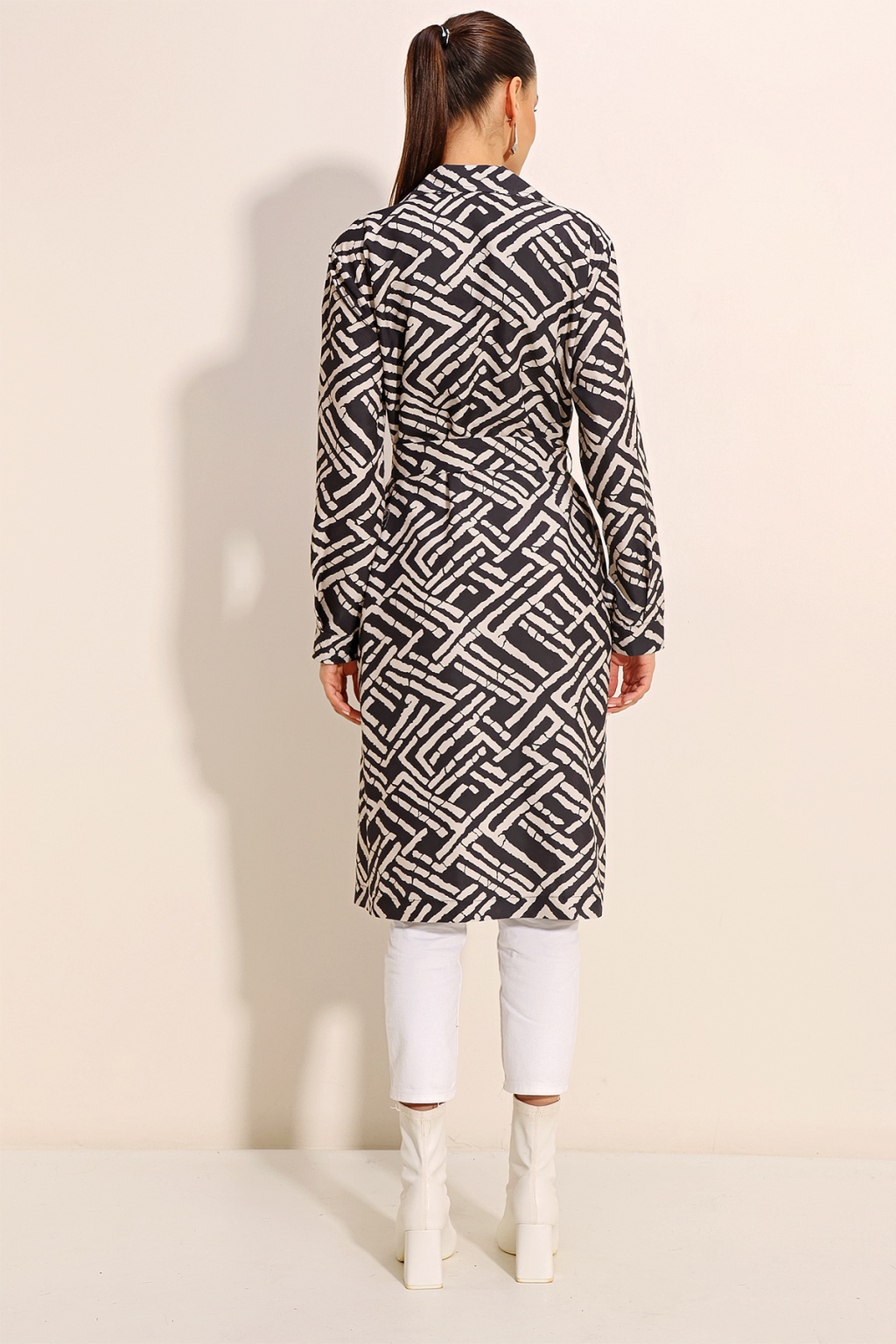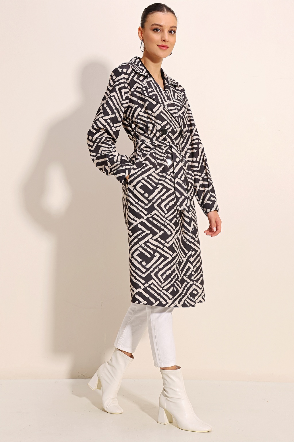 5853 Desenli Kruvaze Yaka Trençkot - C. Siyah