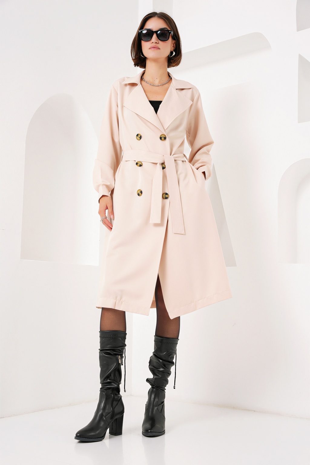 Kruvaze Yaka Trençkot, Kemerli Mevsimlik Trençkot