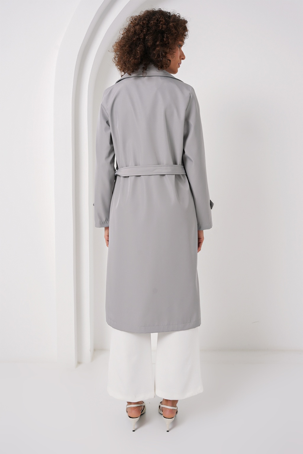 5918 Kruvaze Yaka Trençkot - Gri