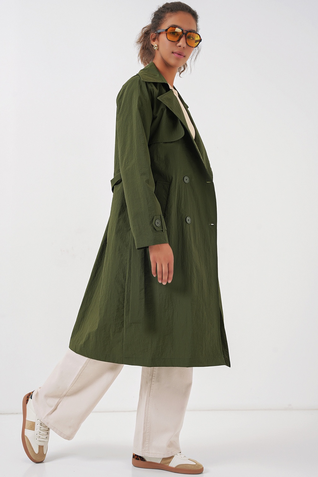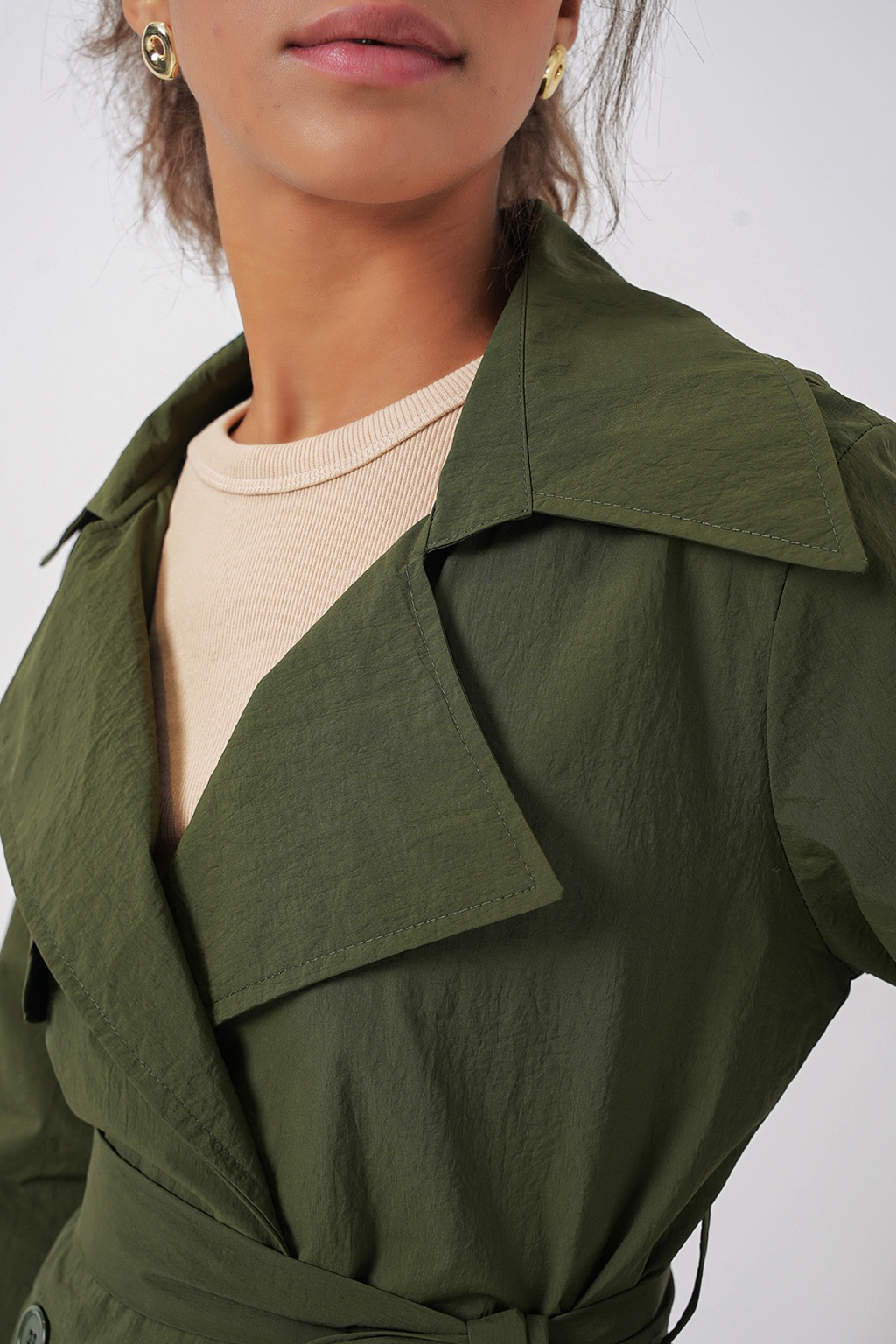 Astarli Kruvaze Yaka Trençkot