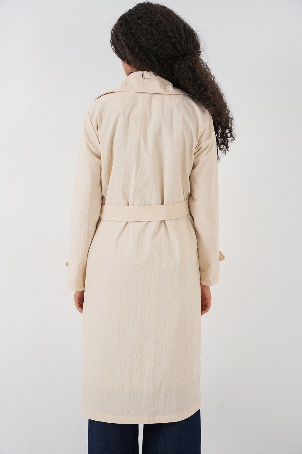 5938 Kruvaze Yaka Trençkot - Krem