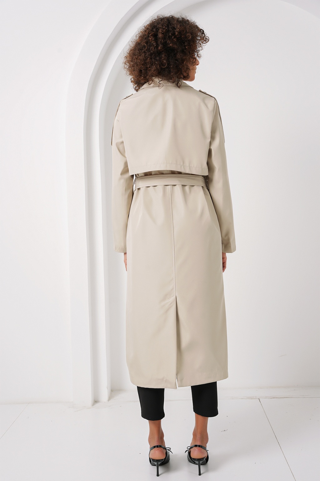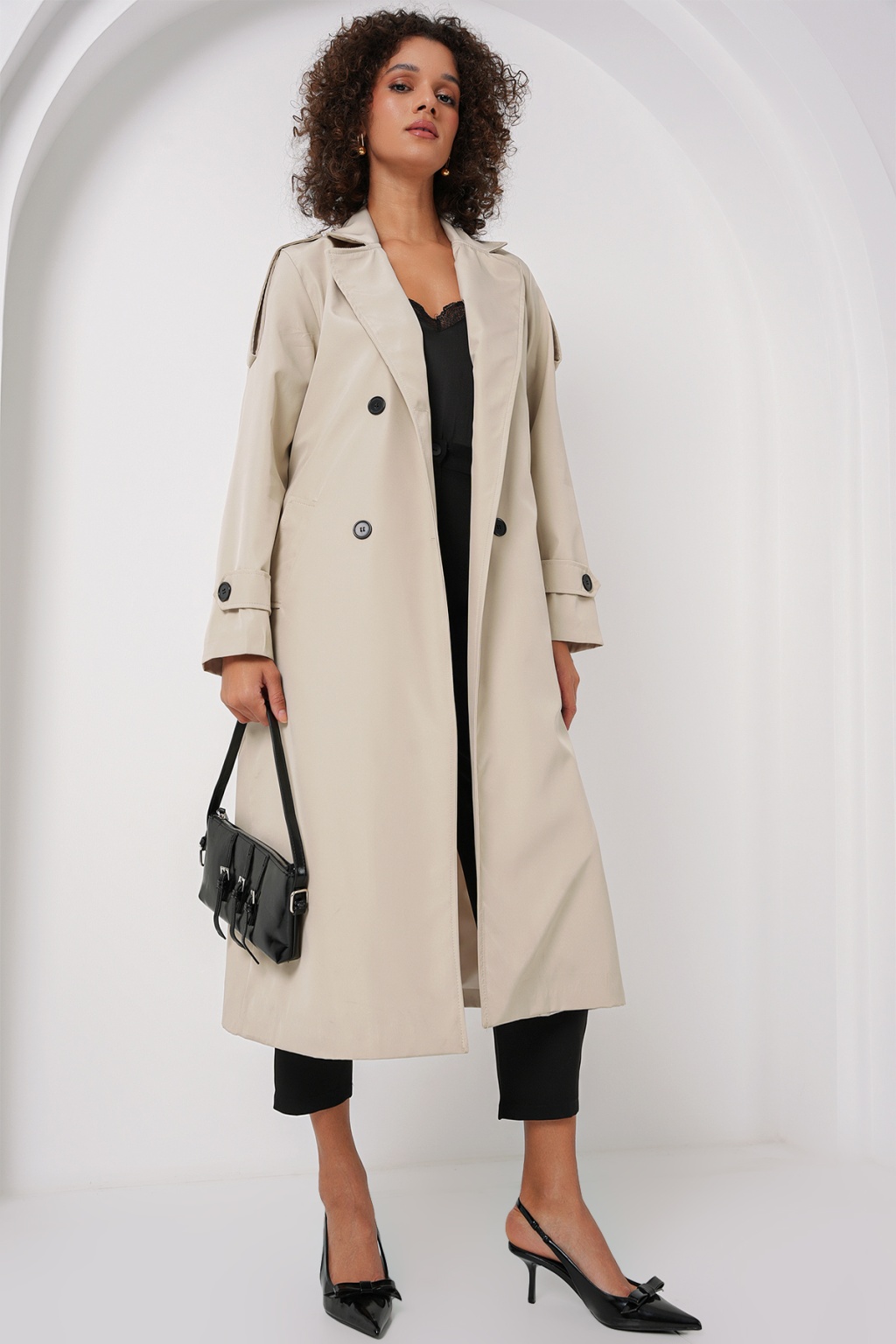 5941 Kruvaze Yaka Uzun Trençkot - Taş