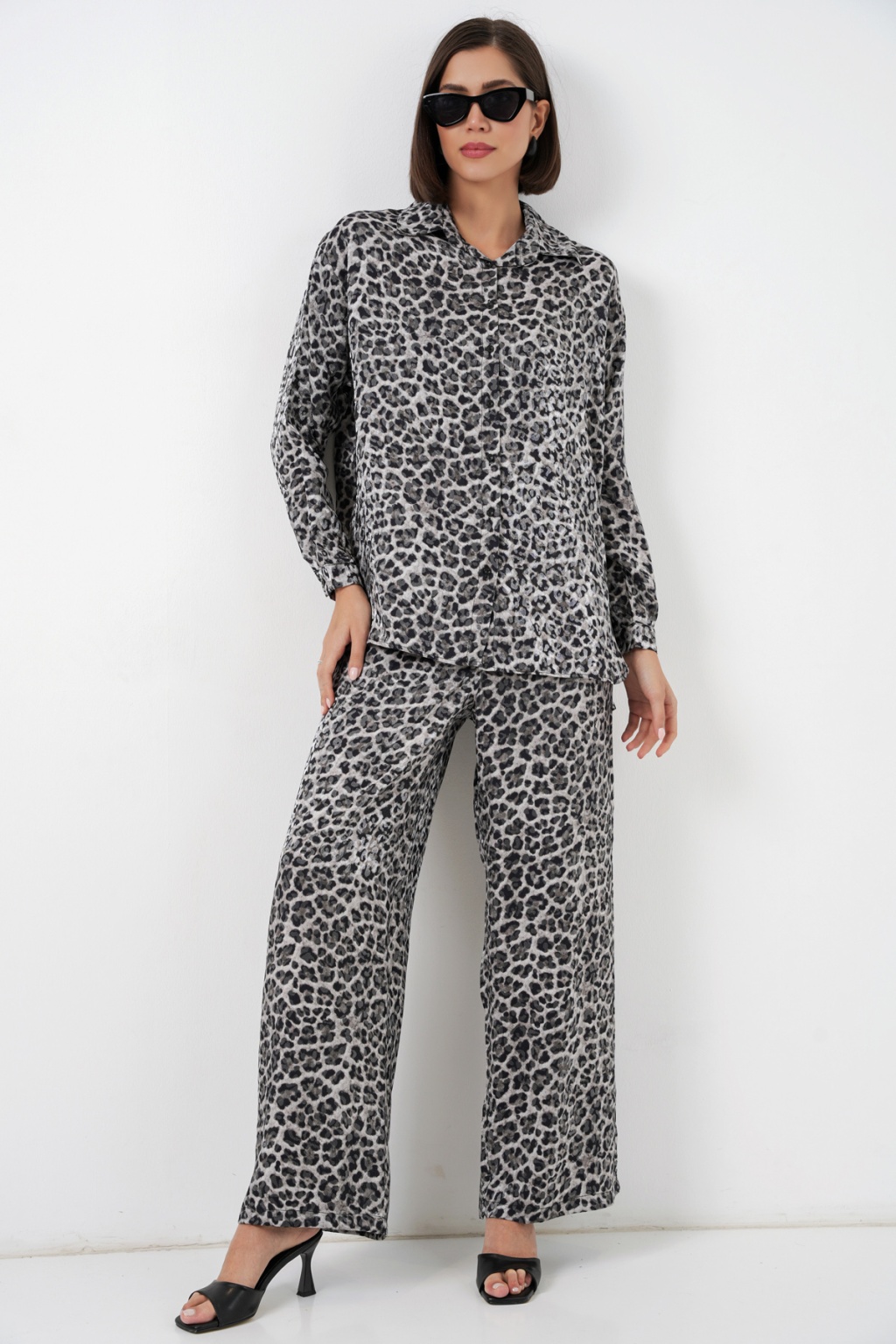 6699 Leopar Desenli Alt Üst Takım - Antrasit