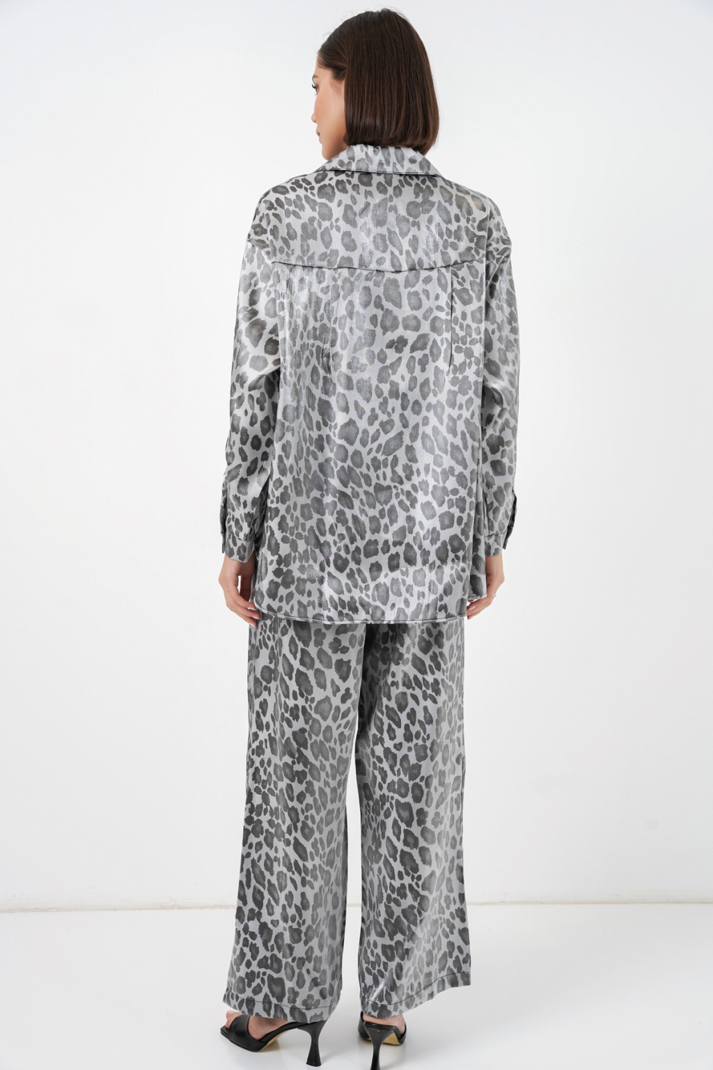 6699 Leopar Desenli Alt Üst Takım - Gri