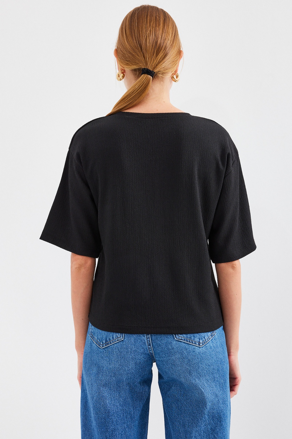 911 Baskılı Örme Basic Tişört - Siyah