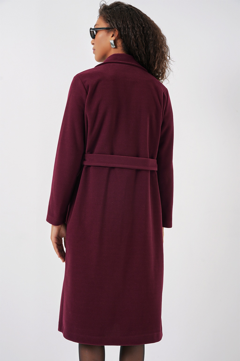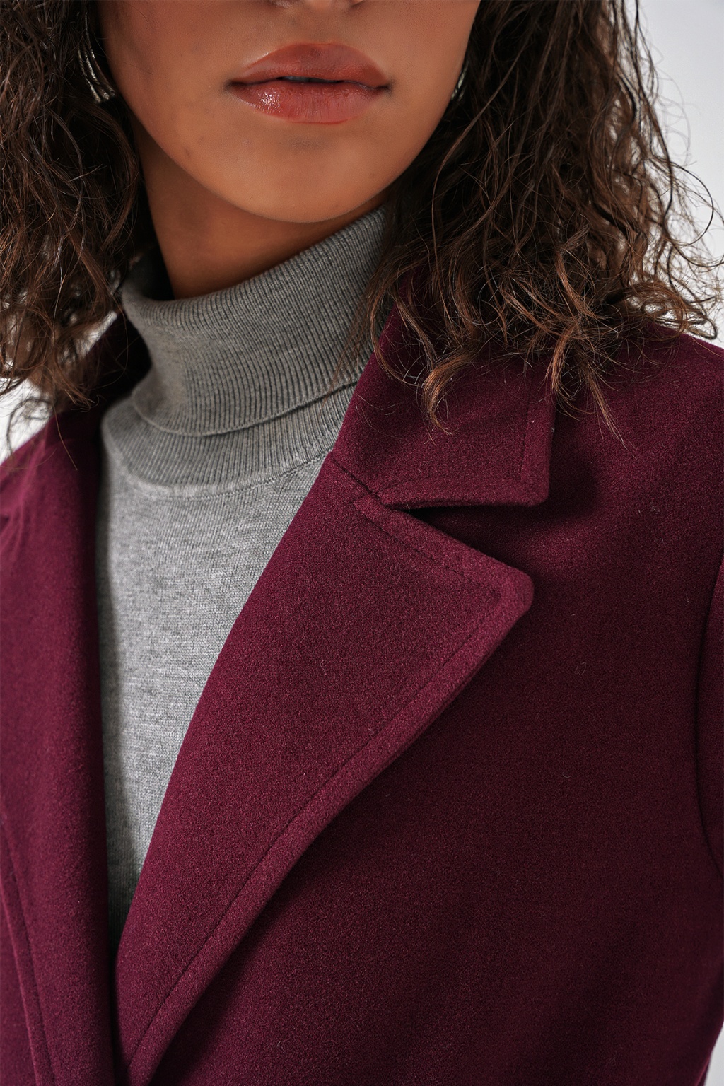 9118 Kruvaze Yaka Kaşe Kaban - Bordo