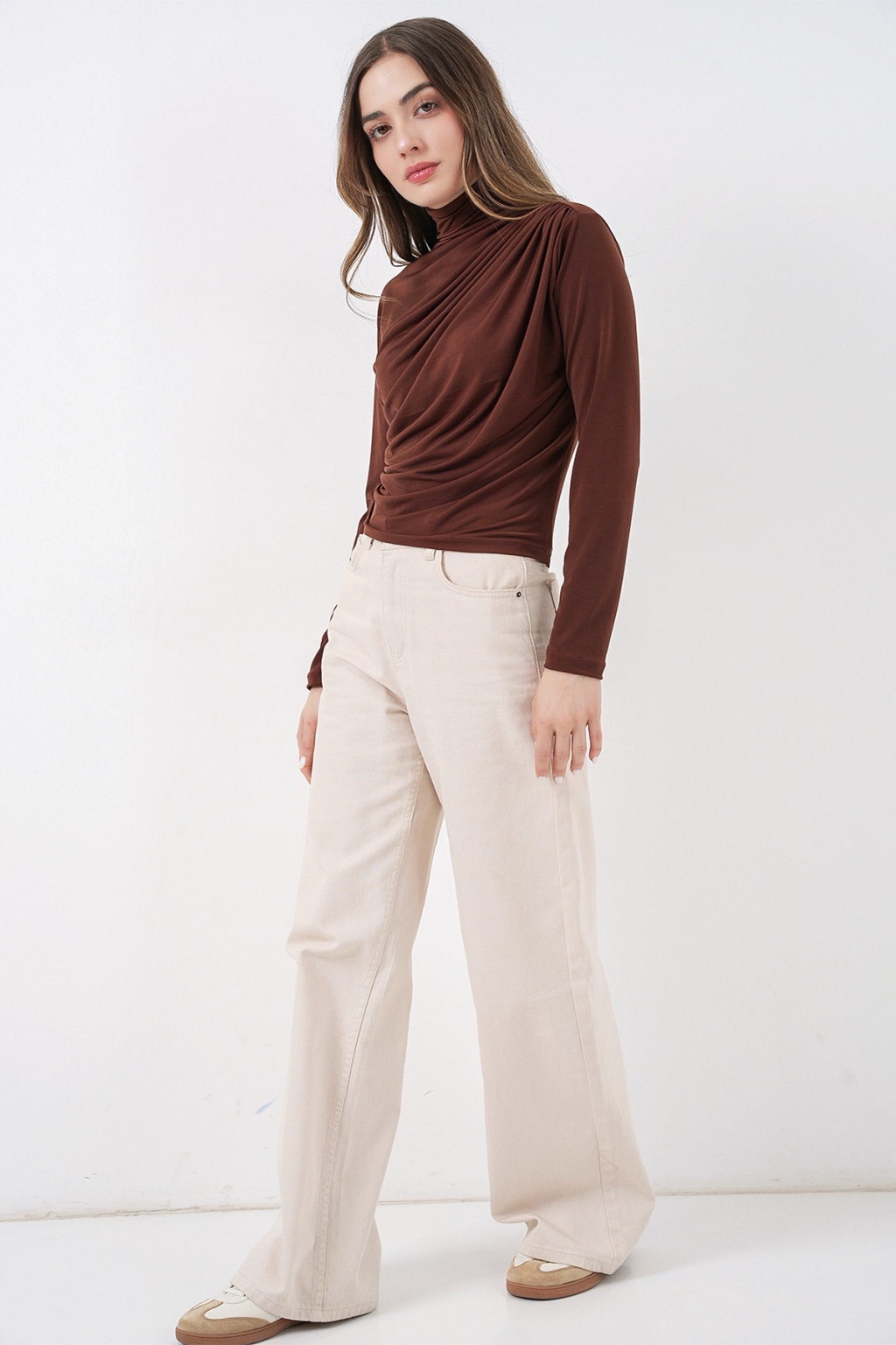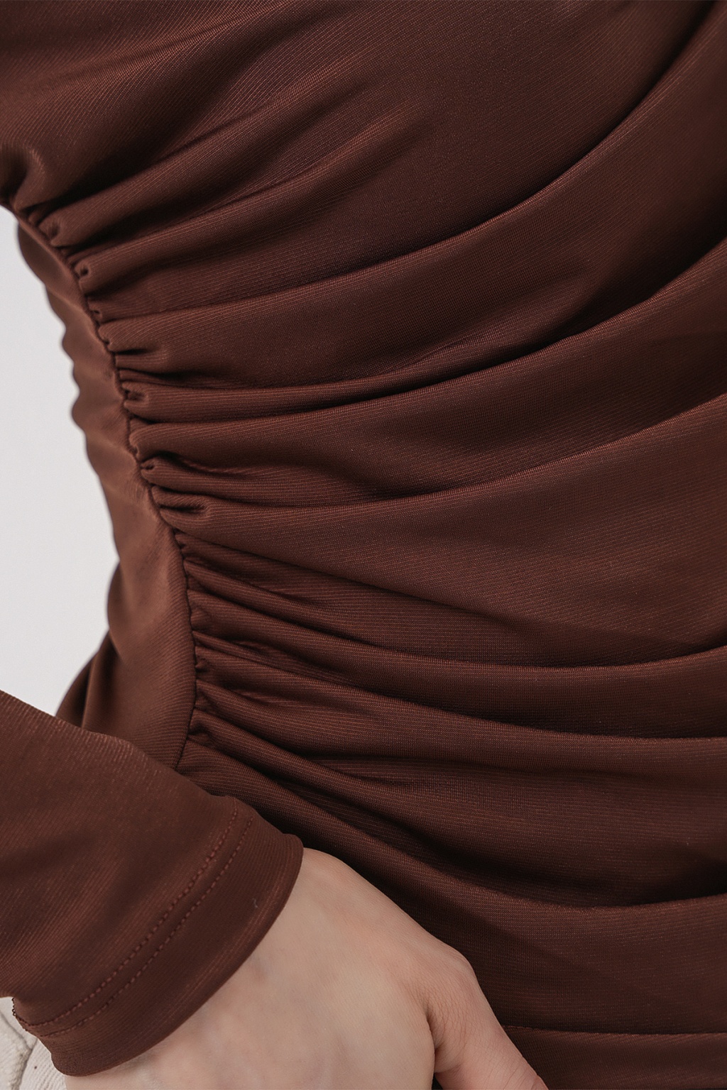 925 Büzgü Detaylı Sandy Bluz - A.Kahve
