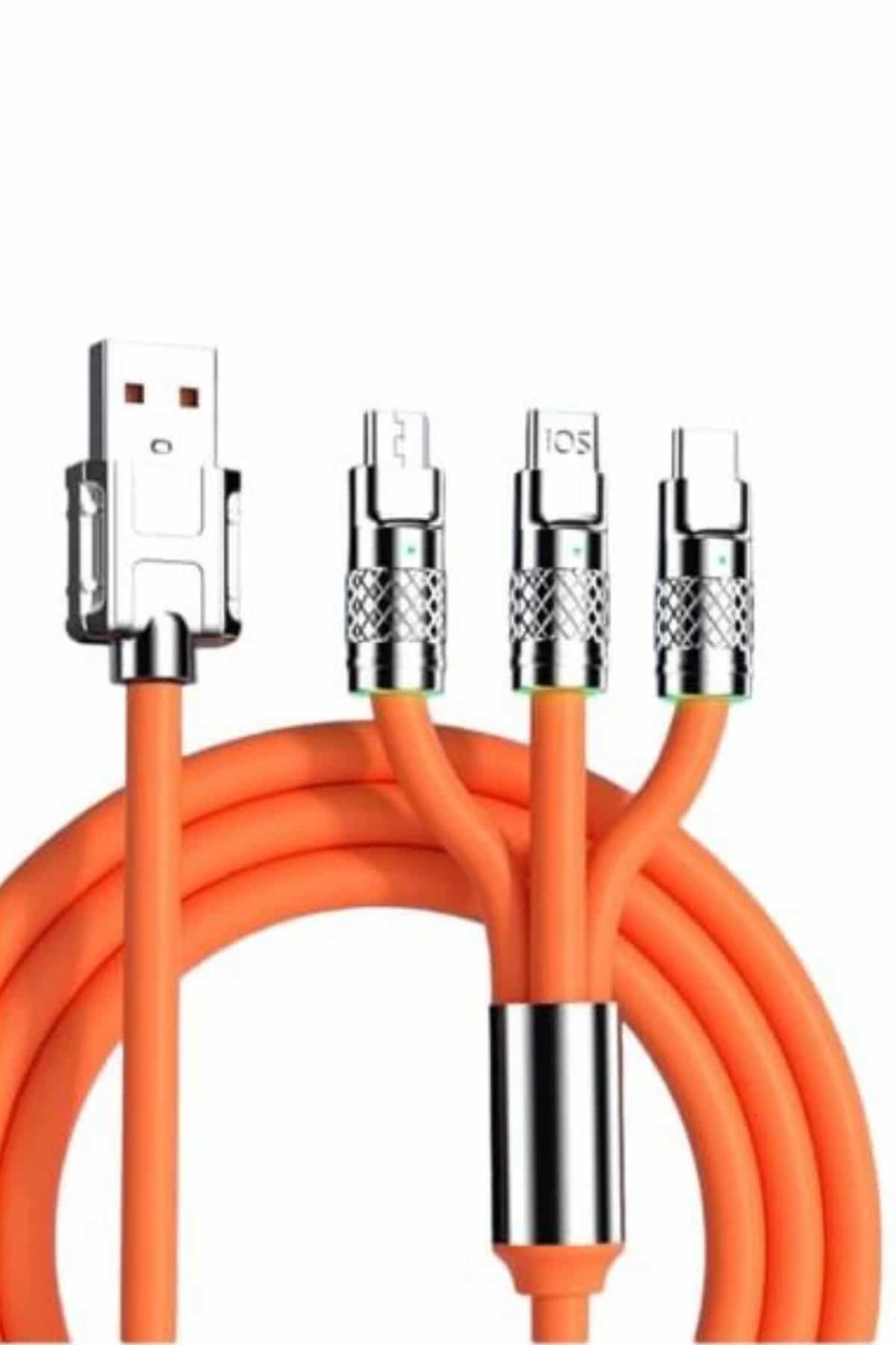 120 W Şarj ve Veri Aktarımı Kablo– 3 Başlıklı Çok Amaçlı Kablo Yüksek Hızlı