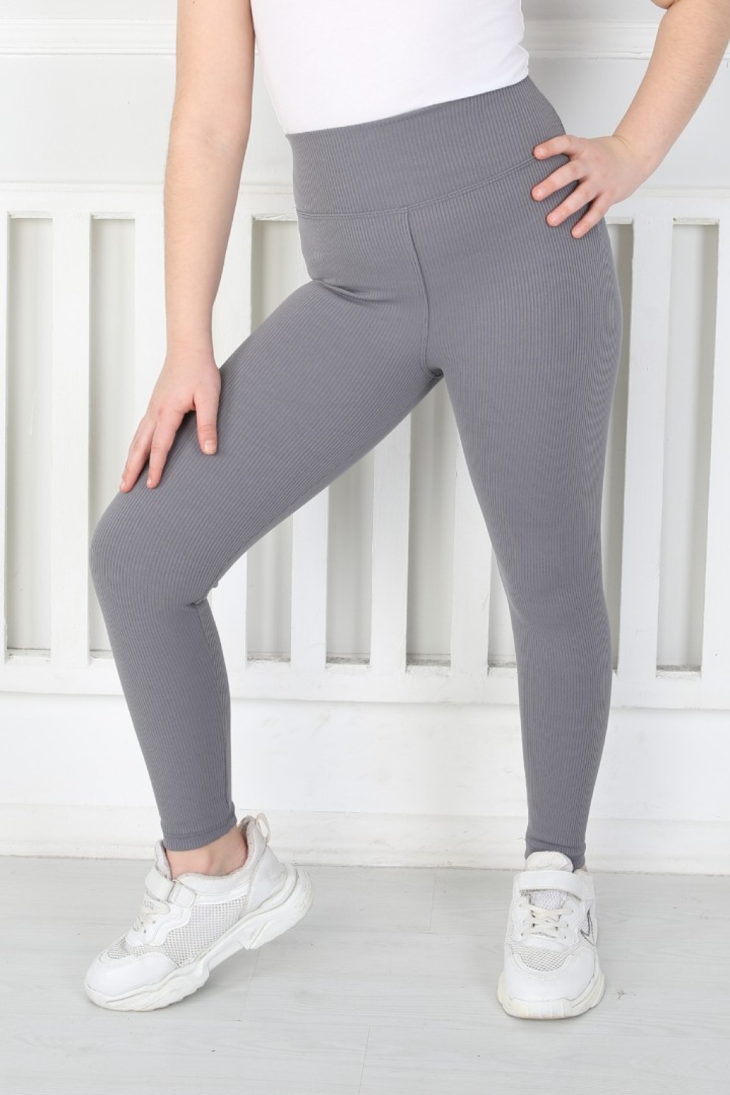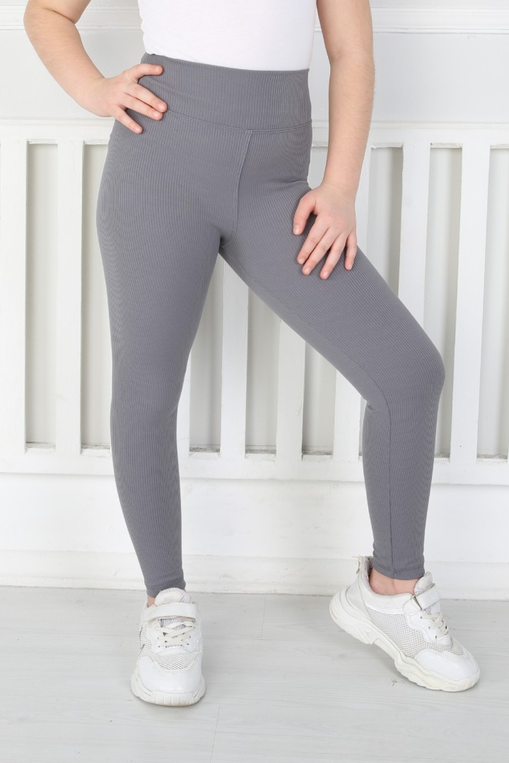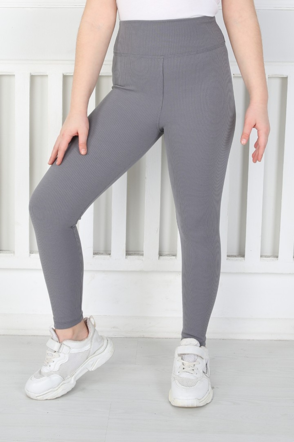 Dar Paça Birinci Kalite Fitilli Kumaş Antrasit Kız Çocuk Günlük Tayt