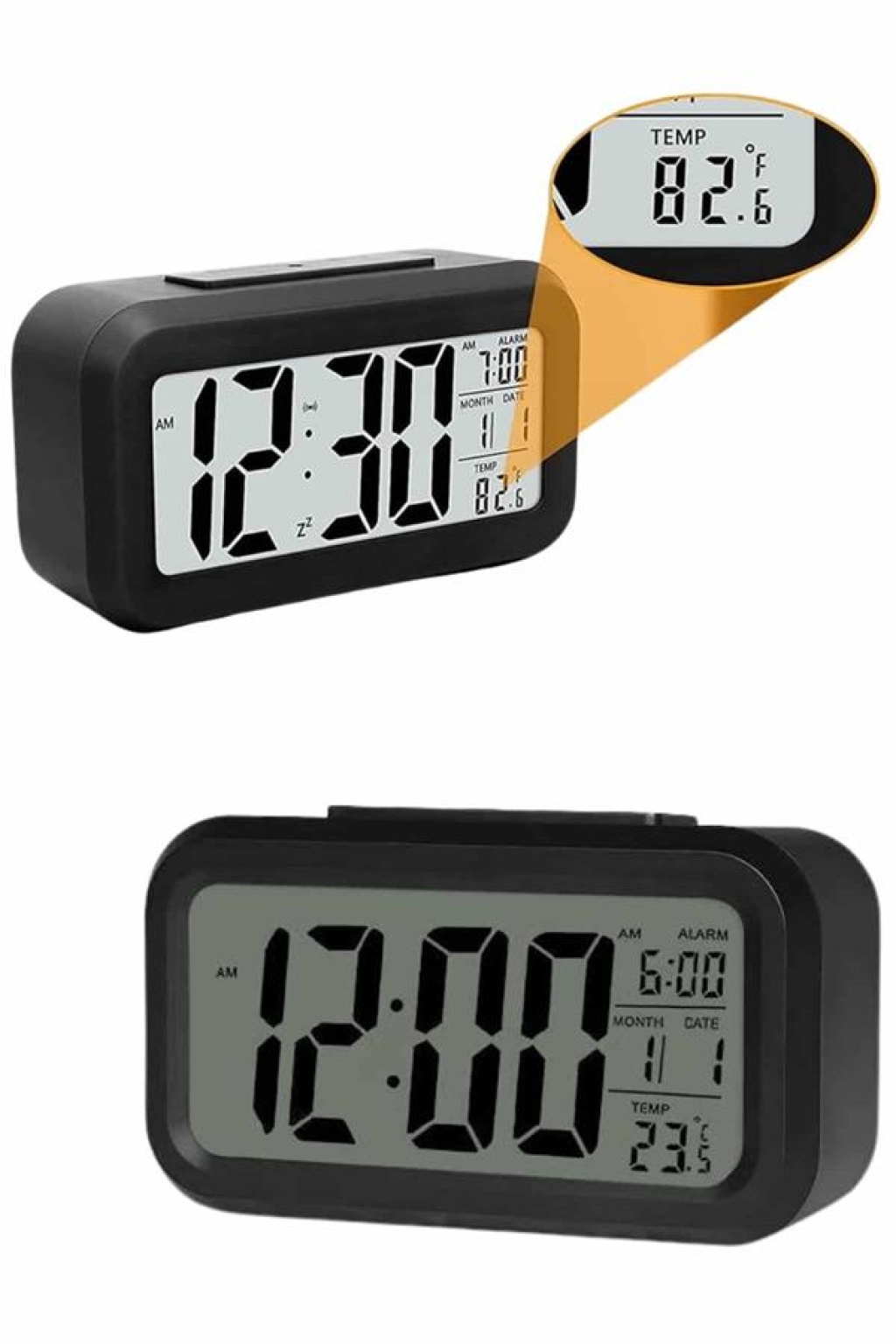 Işıklı Dereceli Masa Ofis Saati Alarmlı Termometre Takvim Çalar Saat