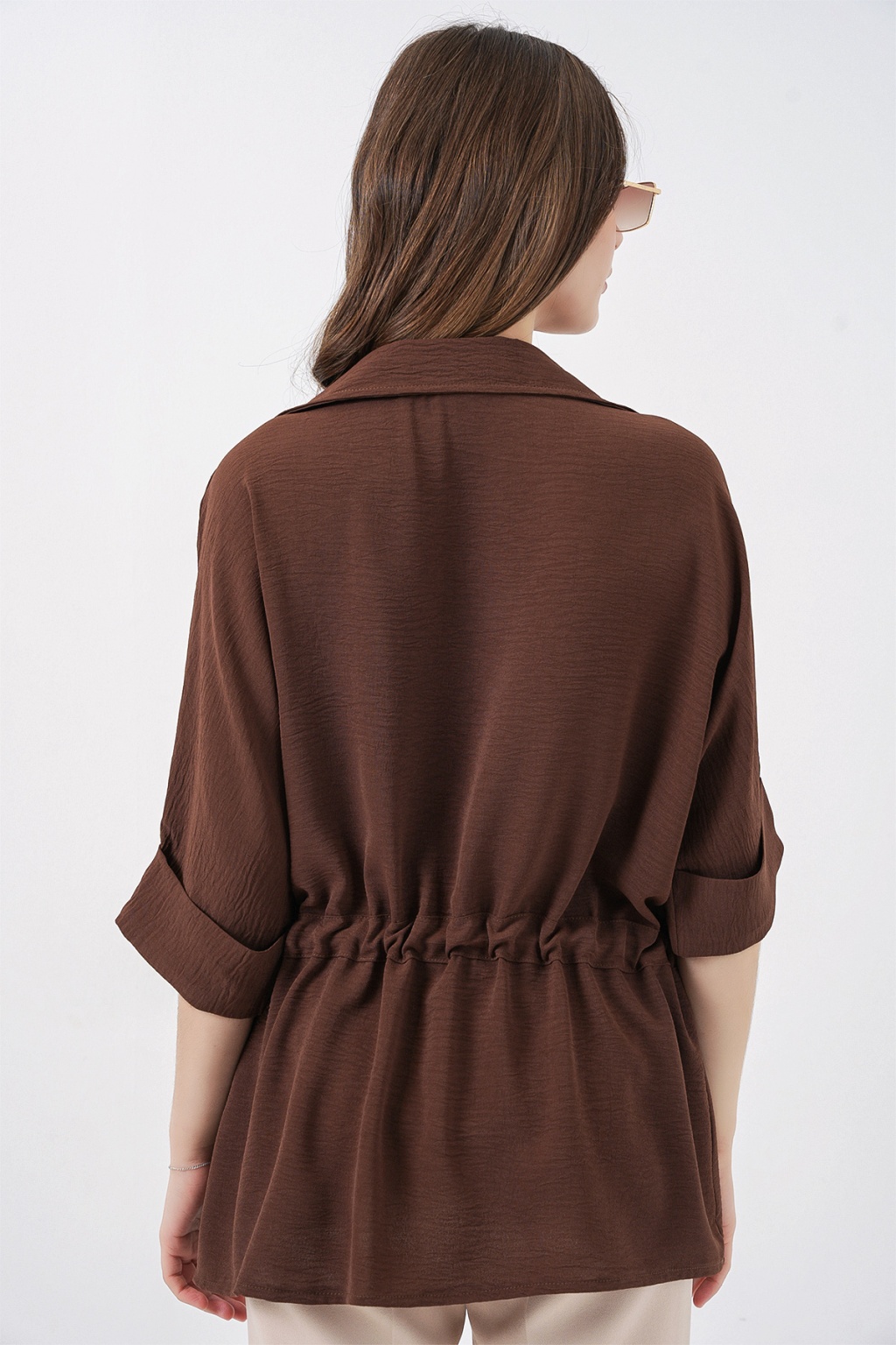 Fermuarlı Kadın Gömlek 0721 - Kahverengi