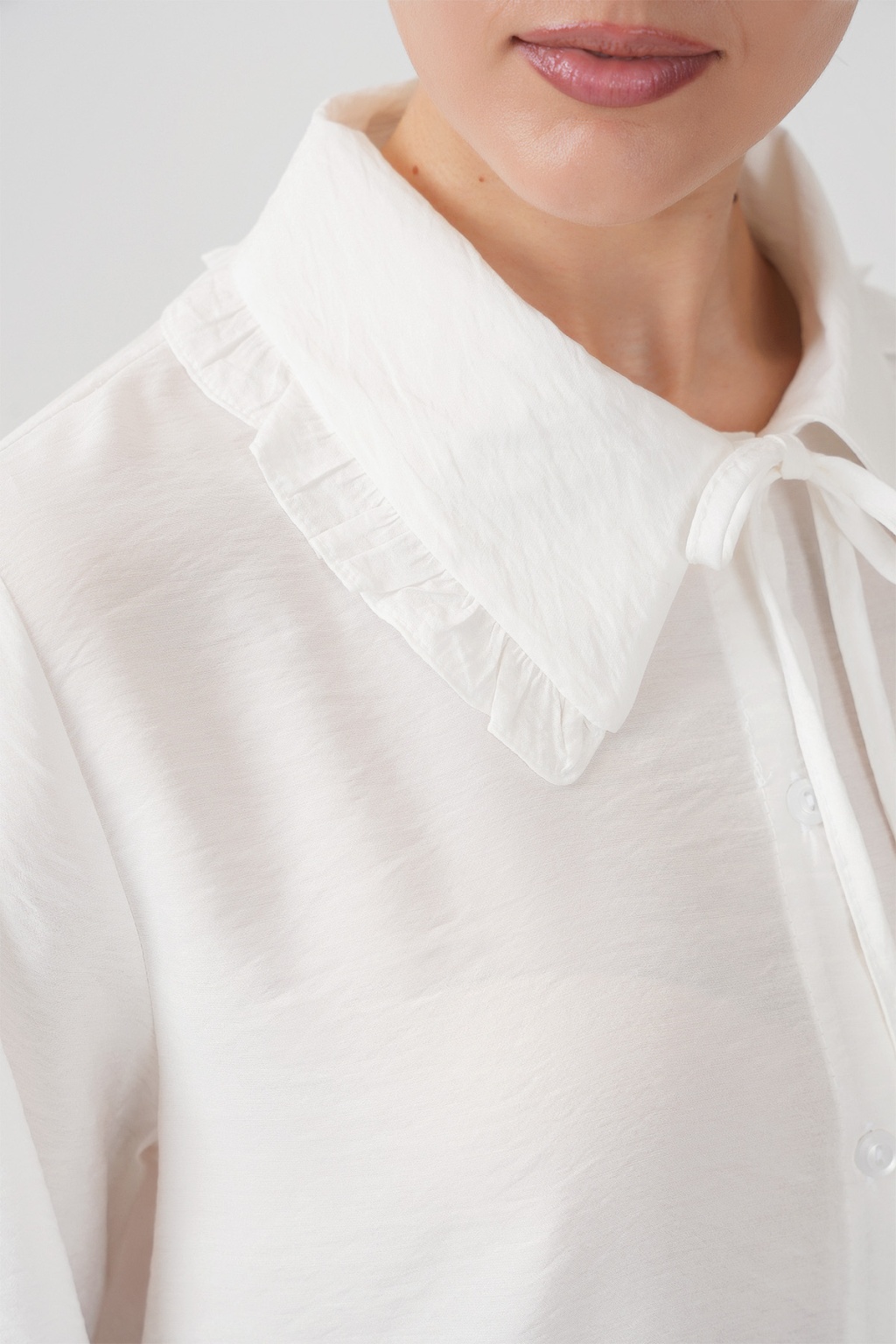 Fırfırlı Uzun Gömlek Tunik 5952 - Beyaz