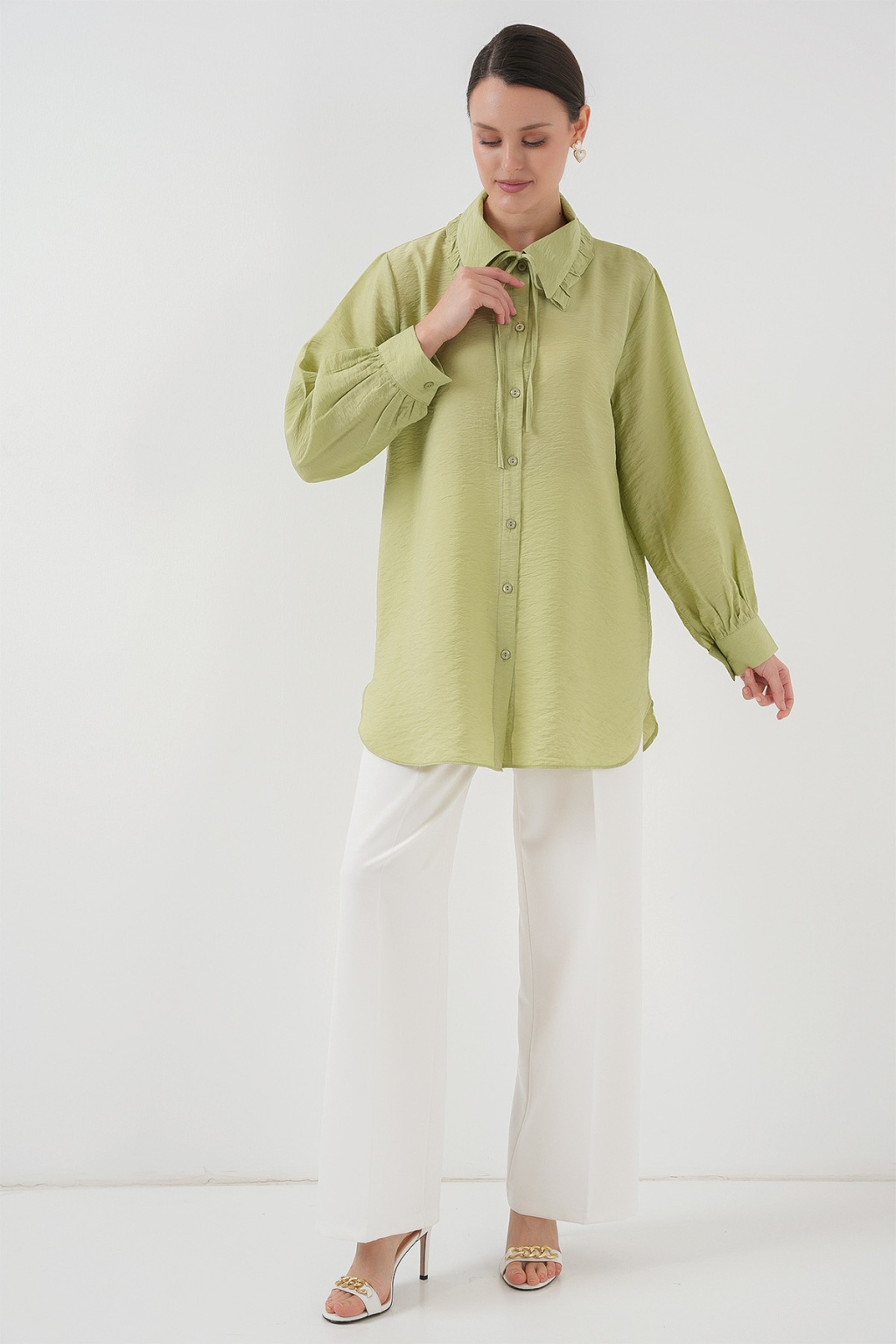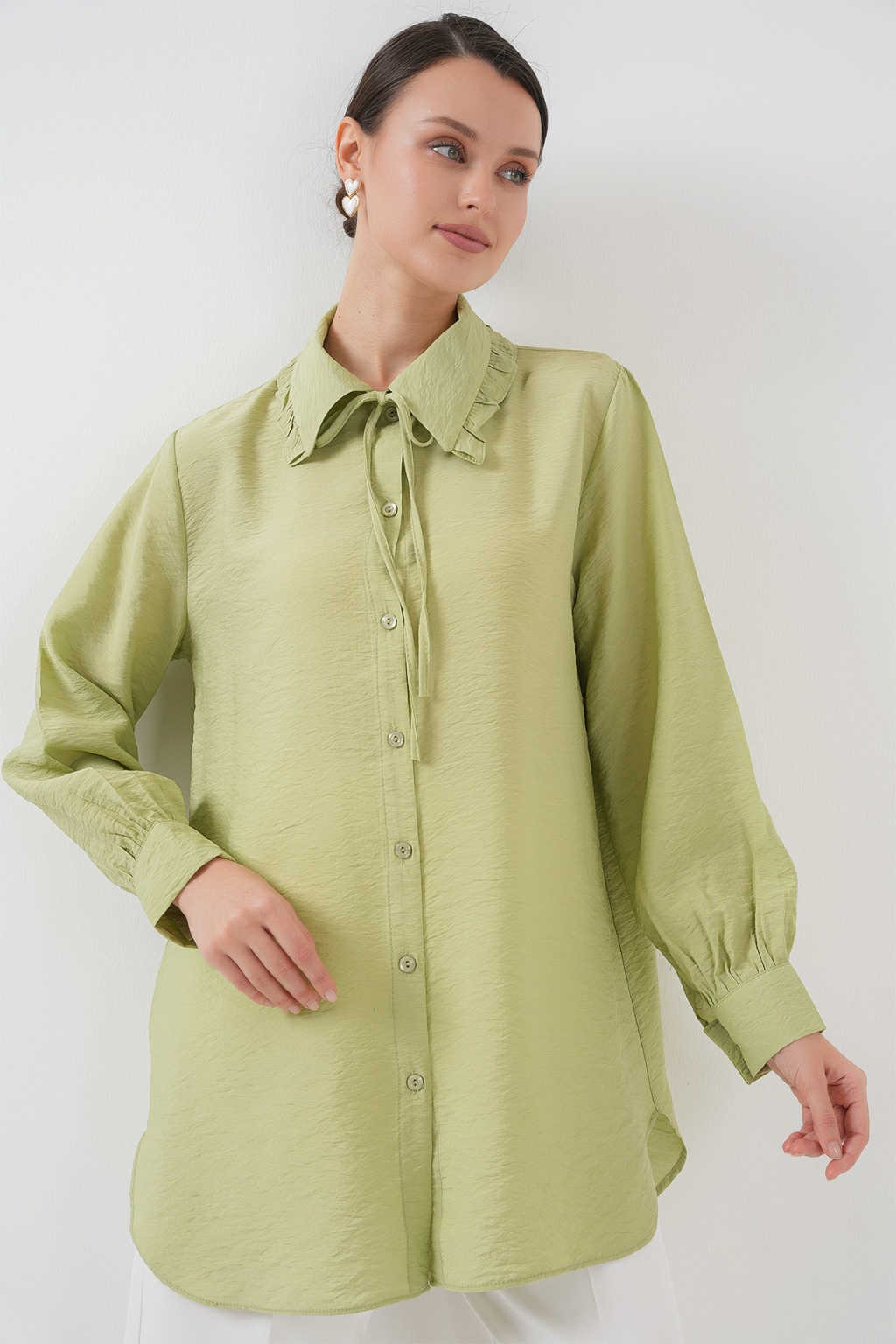 Fırfırlı Uzun Gömlek Tunik 5952 - Çağla