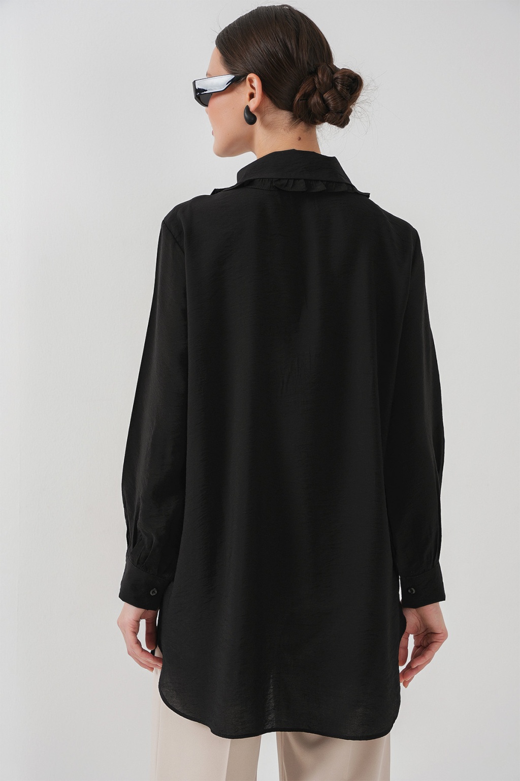 Fırfırlı Uzun Gömlek Tunik 5952 - Siyah