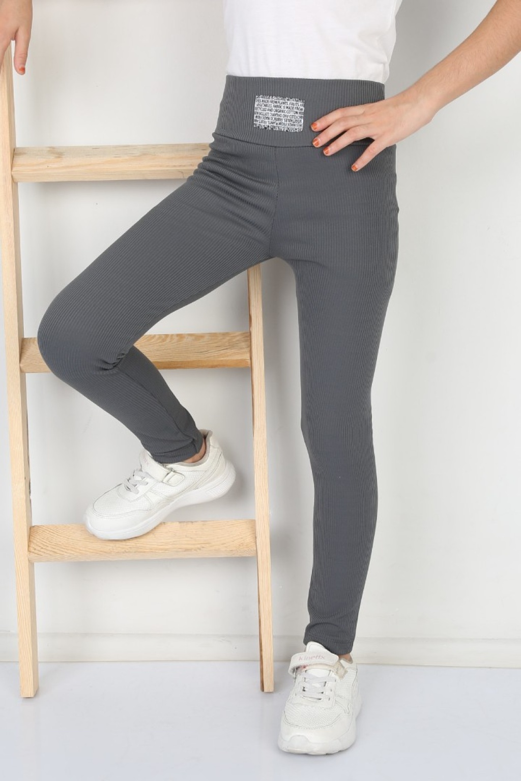 · Fitilli şardonlu antrasit kız çocuk tayt, günlük kullanım için idealdir;