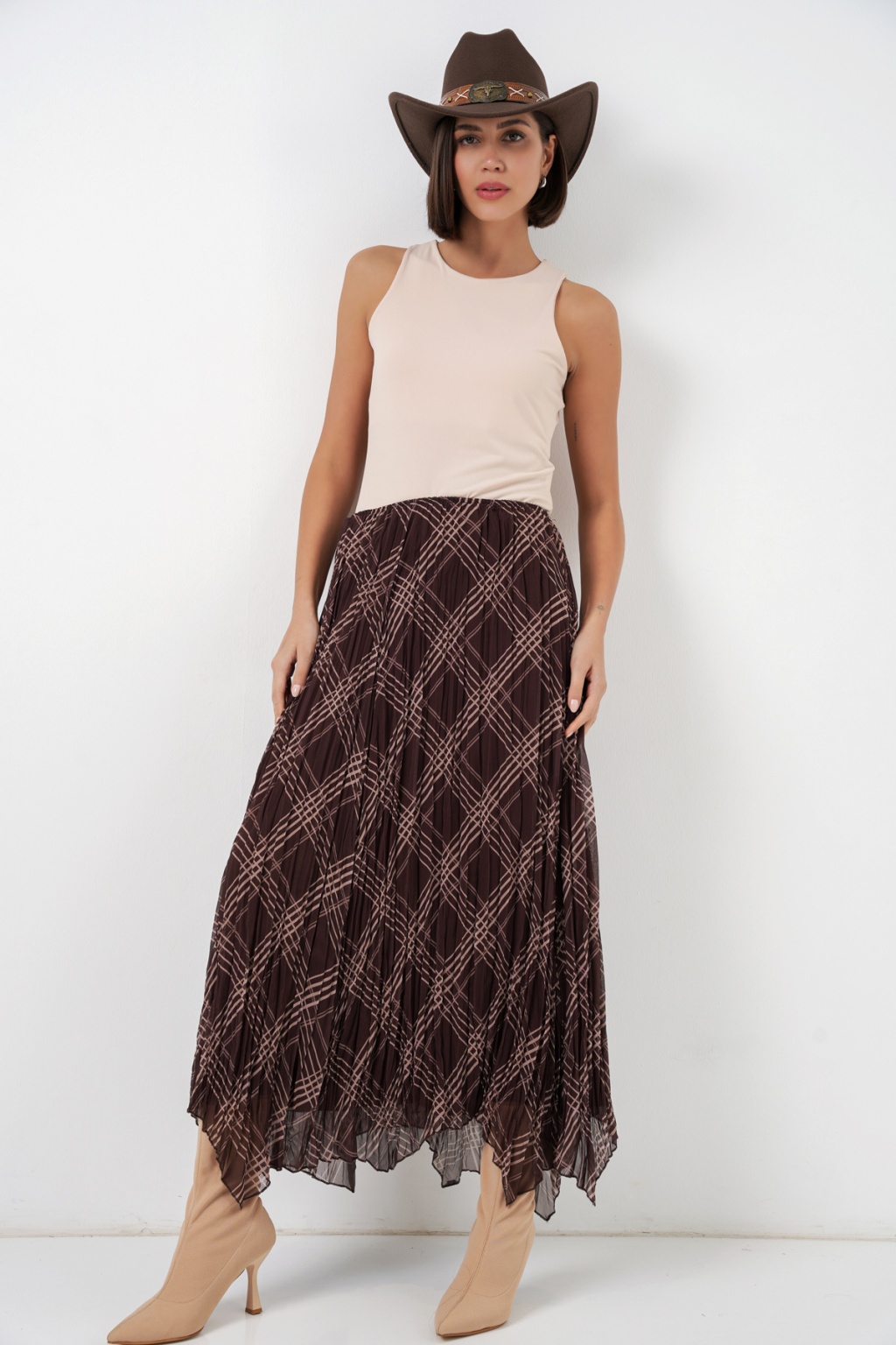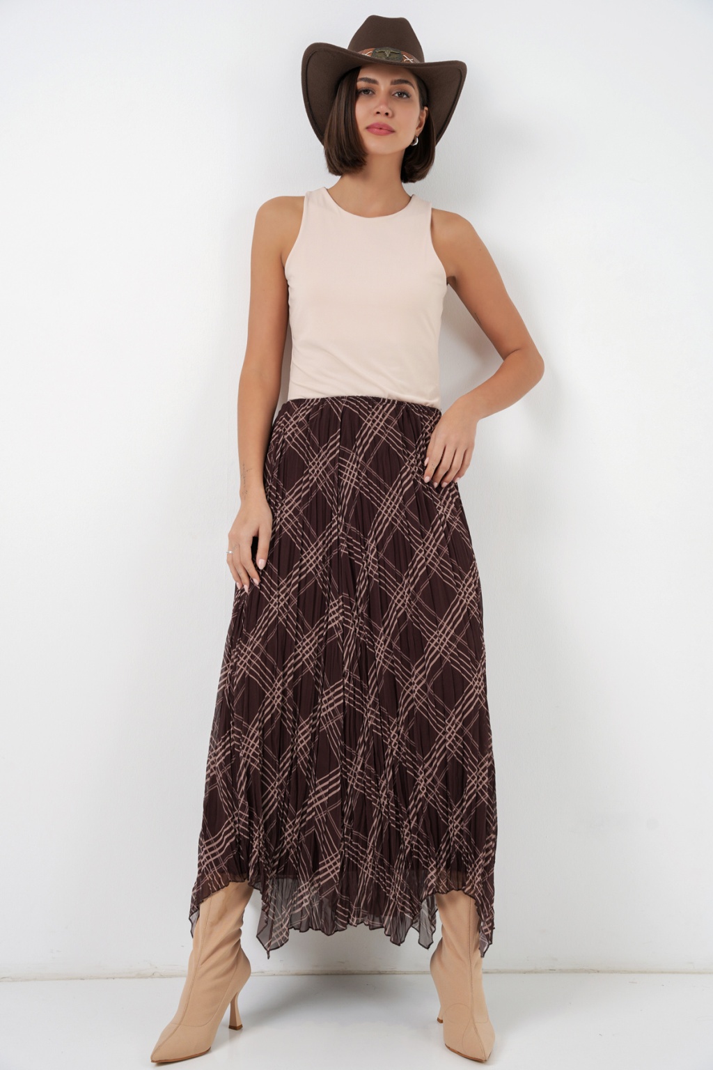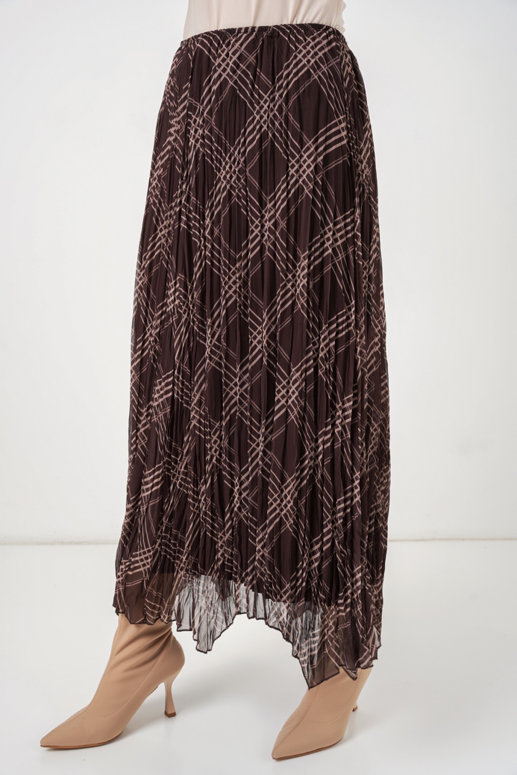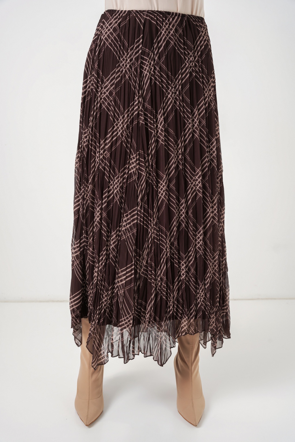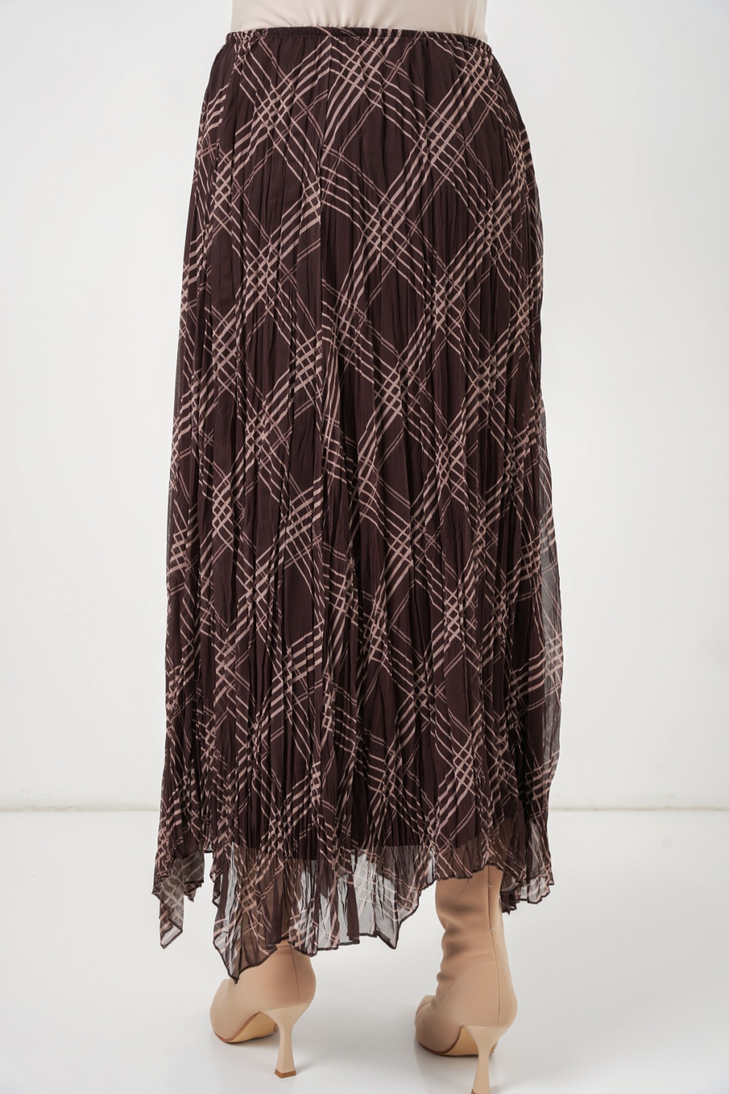 Kadın Asimetrik Kesim Şifon Etek 8056 - Kahverengi