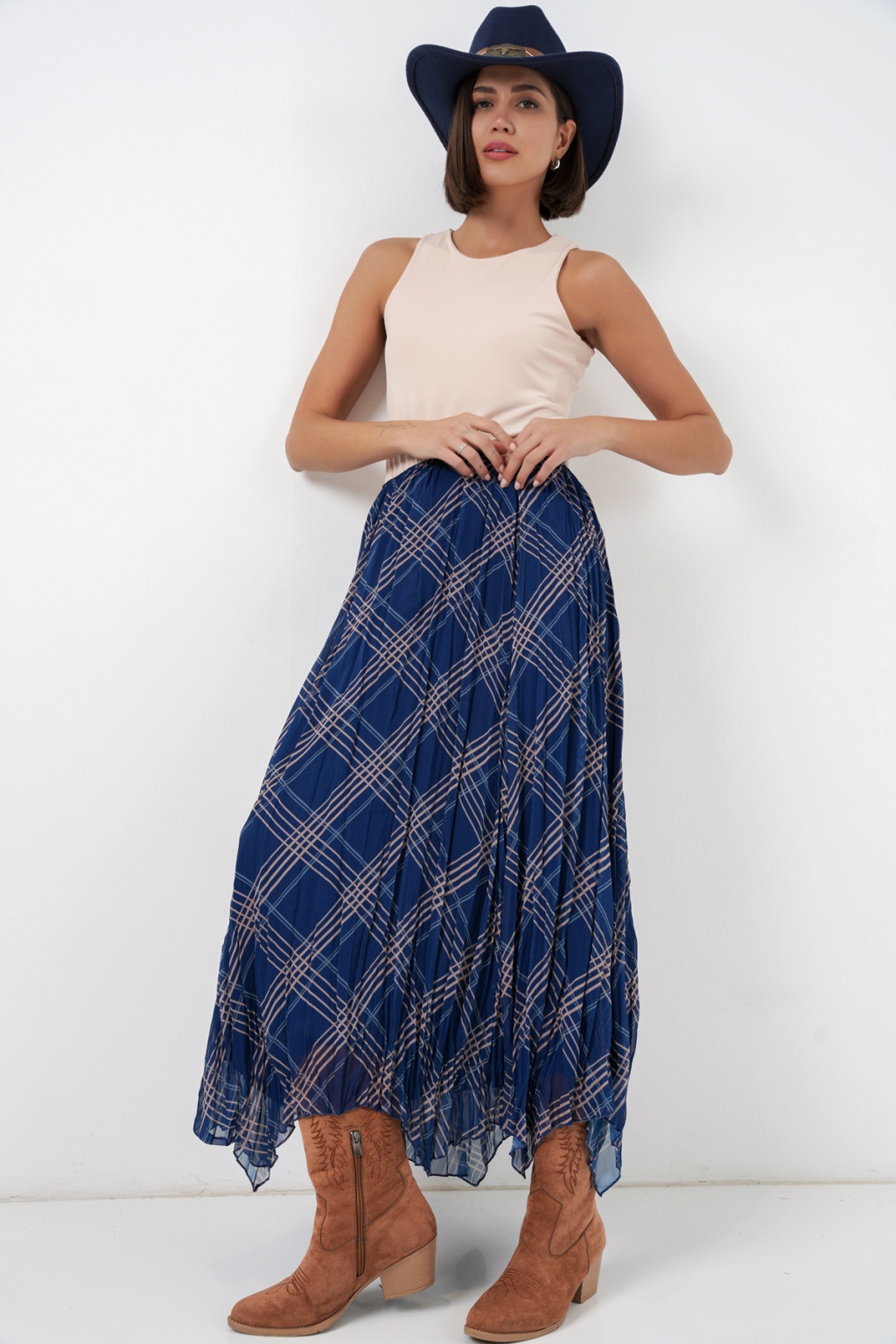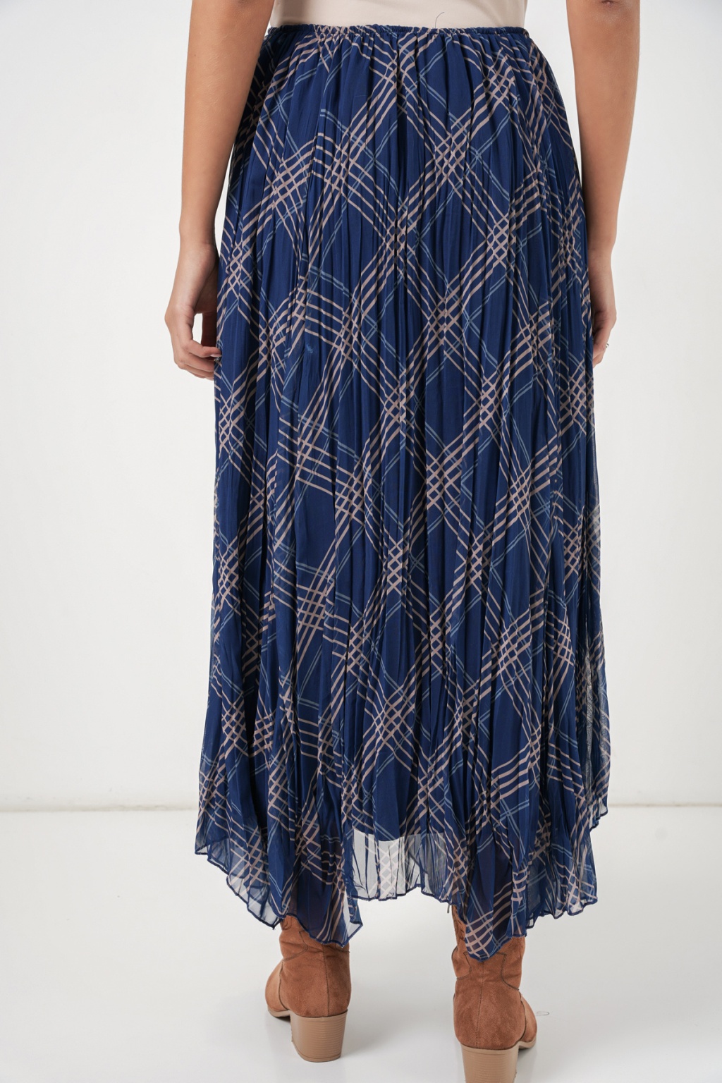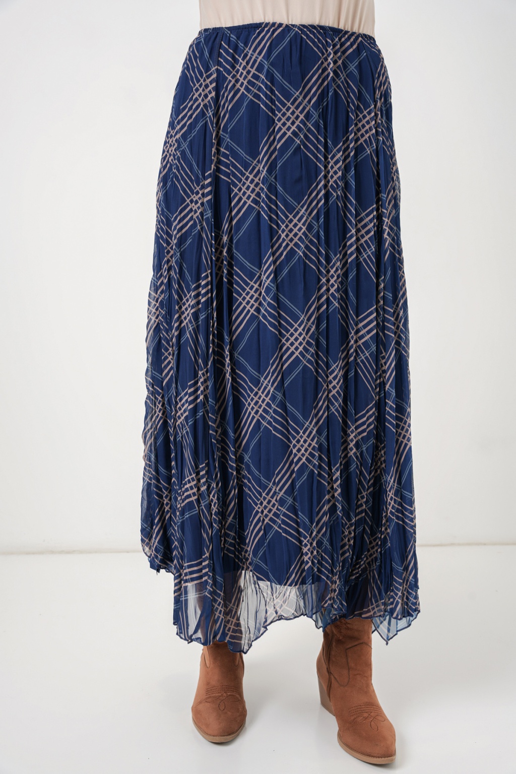 Kadın Asimetrik Kesim Şifon Etek 8056 - Lacivert